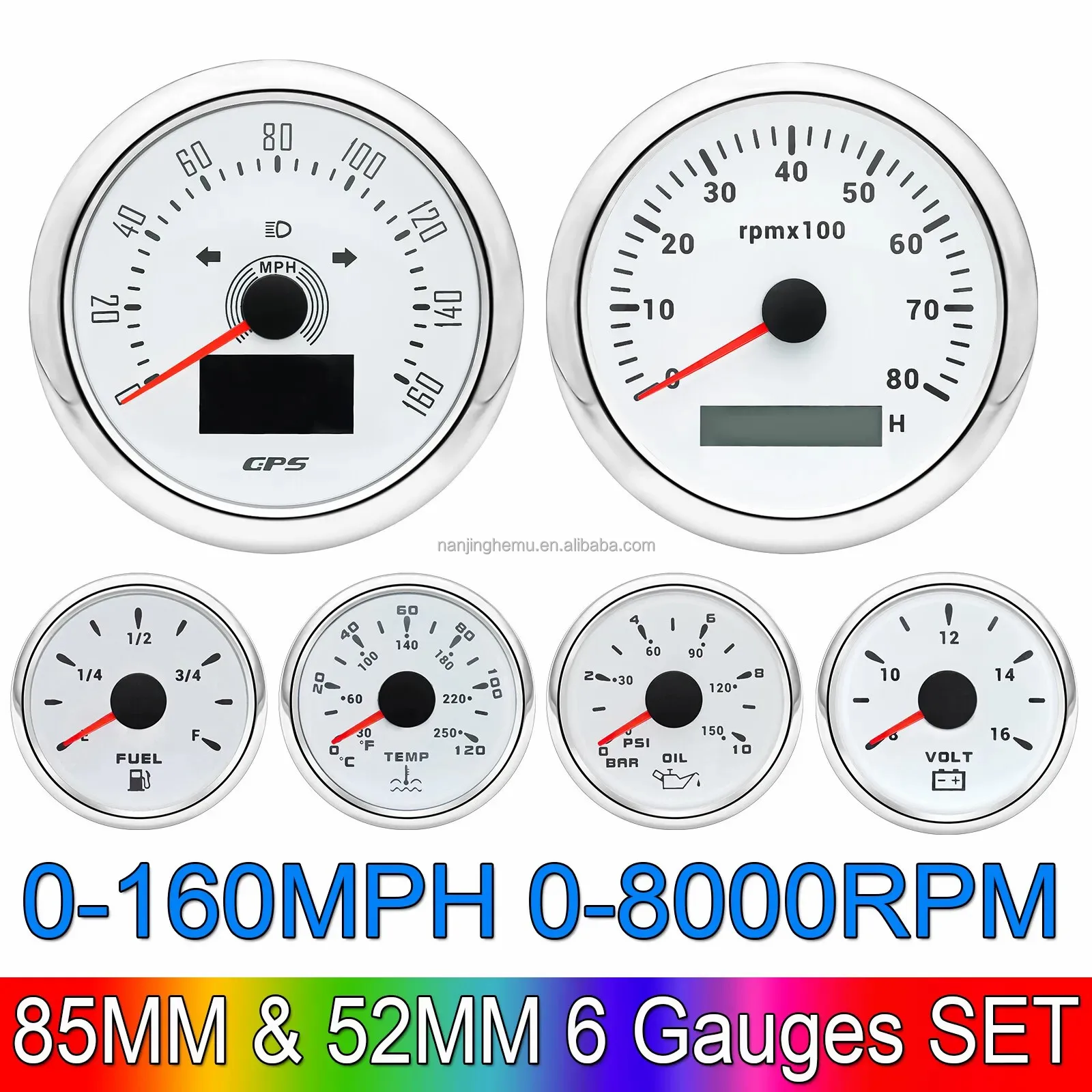 6 Gauge Set 85mm GPS Speedometer 160MPH Tachometer 8000RPM for Boat Car Truck US