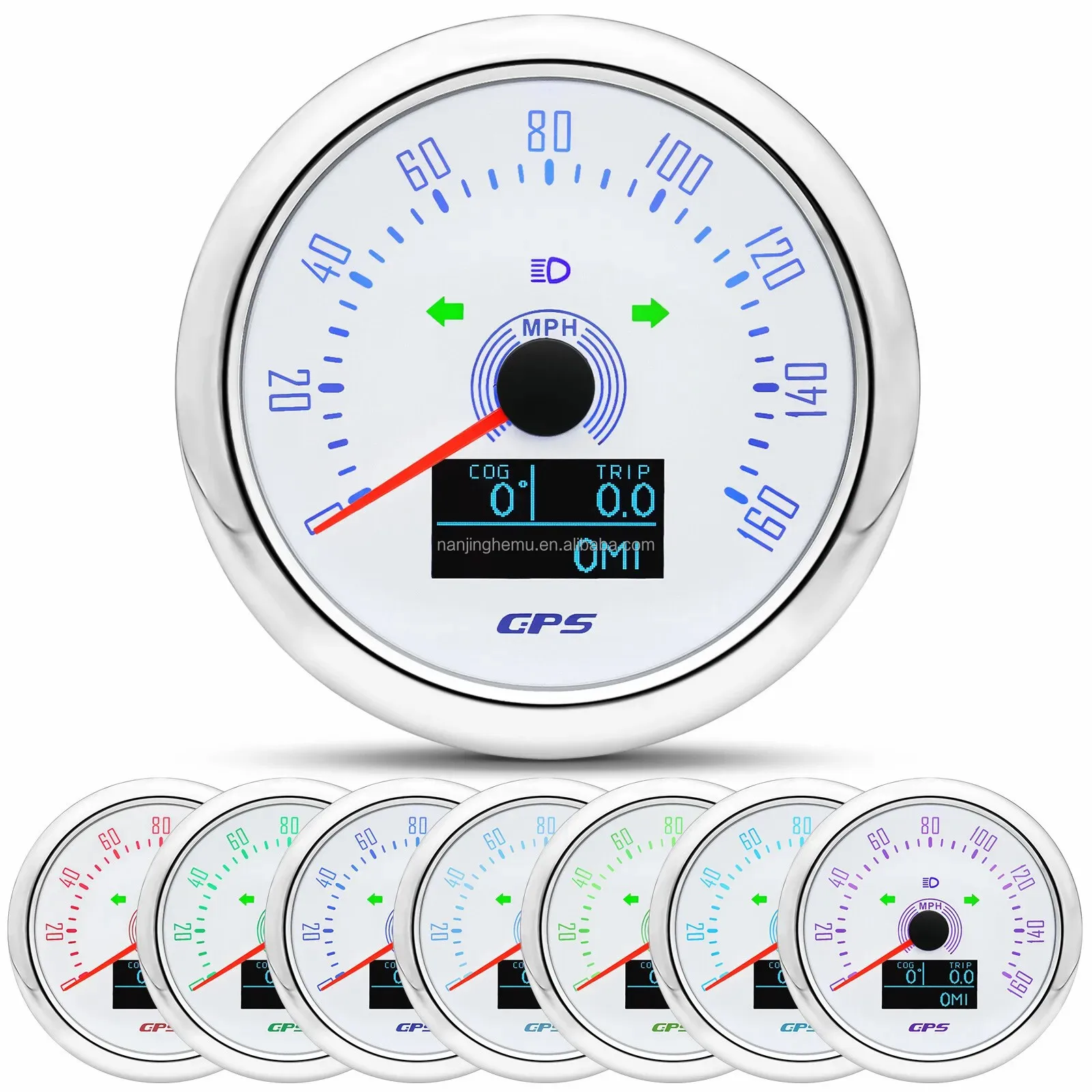 Warmly tips: If any problem after buying. such as some when you install or the parcel received or un-received. please do not open a case and do not hesitate to contact us. We would do our best to give you the best solution. Thank you so muchFeature:High-brightness LED backlight.316 stainless steel for long-term use even in acid-base. humid environment.IP67 waterproof and dust-proof grade.With curved glass( with anti-fog function).Suitable for all kinds of vehicle modification.Using stepper motor drive pointer. accurate display of the engine speed. and with the LCD display clear display mileage.Gauges have many kinds backlight color (red.yellow.orange.green.blue.purple.white).customers can adjust any color that you like Product Detail Speedometer GaugeInstall Diameter: Φ85mm or 3-3/8"Signal: GPSWorking Voltage: 9~32V DCSize: 12x8x12cm / 4.72×3.1×4.75 inchIndication Range: 0-160mphBacklight:7 Colors BackligtTachometer Engine hours: 0.0-99999.9HBacklight :7 Color backlightIndicating Range: 0~8000 RPMSignal : PulseFor Tachometer. you can substitute for different unit. please contact us before / after purchase or note on the order.Tachometer: 0-3000rpm/0-4000RPM/6000RPM/7000RPMVolt GaugeSizes: 52 mm (2-1/16")Measuring Range: 8 – 16 (V)Backlight: 7 Colors Fuel Level GaugeSizes: 52 mm (2-1/16")Measuring Range: Empty – FullResistance: 240- 33ohms / 0-190ohmBacklight: 7 Colors Water Temperature GaugeInstall diameter: Φ52mmIndication range: 0~120/30-250Input signal: 287.4~22.4 ohmStorage temperature: -40~+85Backlight: 7 Colors Oil Pressure GaugeInstall diameter:Φ52mm or 2-1/16"Indication range:0~10bar / 0-150 PSIOperating temperature:-30~+75??Storage temperature:-40~+85?? Backlight: 7 Colors Package Includes:1X 85MM GPS Speedometer Gauge1X GPS Antenna1x 85MM Tachometer1X 52MM Voltmeter1x 52MM Fuel level gauge1X 52MM Water temp gauge1X 52MM Oil pressure gauge Installation Instruction