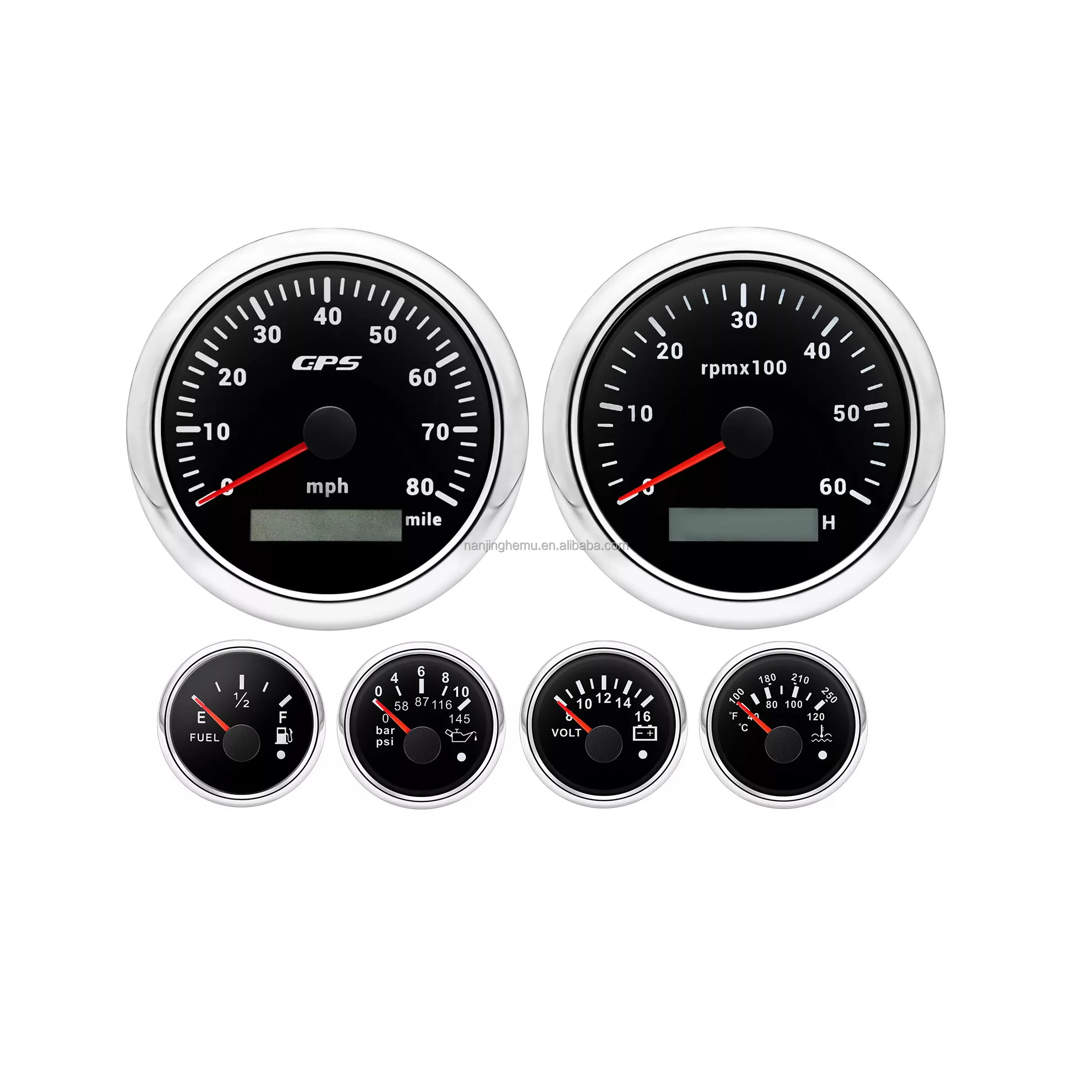 item | 6 Gauge Set 85mm GPS Speedometer 80MPH Tacho 6000RPM Gauge for Boat |