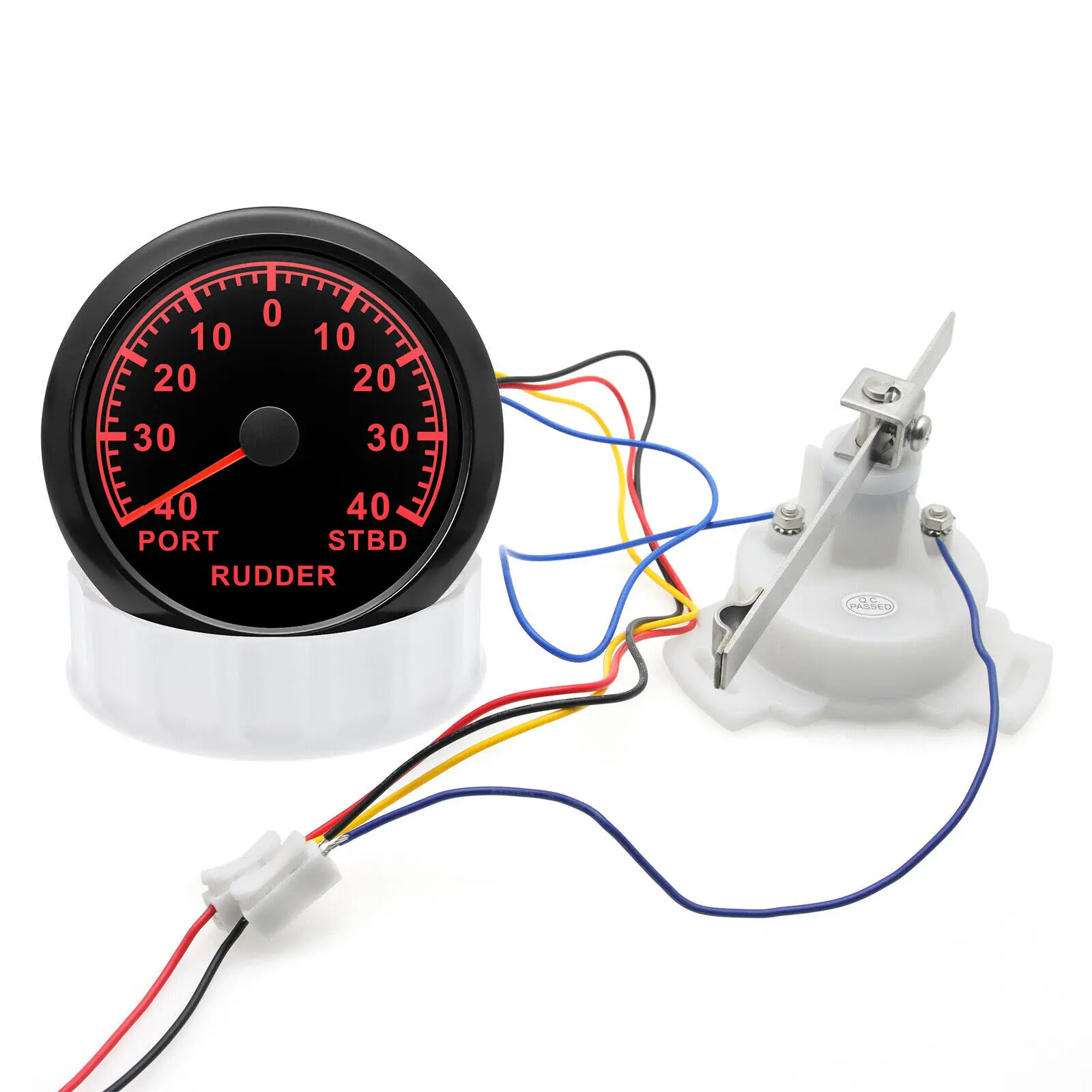 Product Descriptions100% imported MCU. stable performance.Gauges front cover use stainless steel 316LIP67 waterproof and dust-proof gradeStepper motors used for full range of stepping gauges.great feature with its less power consumption.longer life.higher precision etc.With curved glass (with anti-fog function) Rudder Angle IndicatorInstall diameter:Φ85mm or 3-3/8"Indication range:port~STBDInput signal:0~190ohmWorking voltage:9~32VDCGrade of protection:IP67Item color: Sliver Rudder Angle Gauge SensorMaterial: Stainless Steel. PlasticSize: 13.2cm x 8.5cm x 6cm/5.2'' x 3.3'' x 2.4''Volt: 12V/24VResistance: 0-190ohmsStyle: Plastic FaceColor: WhiteVolt: 12V/24VConnecting:2 Wires for 1 GaugeMore Details: Rudder sensor is usually installed on the sternward rudder hore to collect signals by wire resistor.These sensors are made of materials of the highest quality. Package includes1x Rudder Angle Indicator1x Rudder Angle Gauge Sensor1x Multi-plug socket1x Installation Instruction