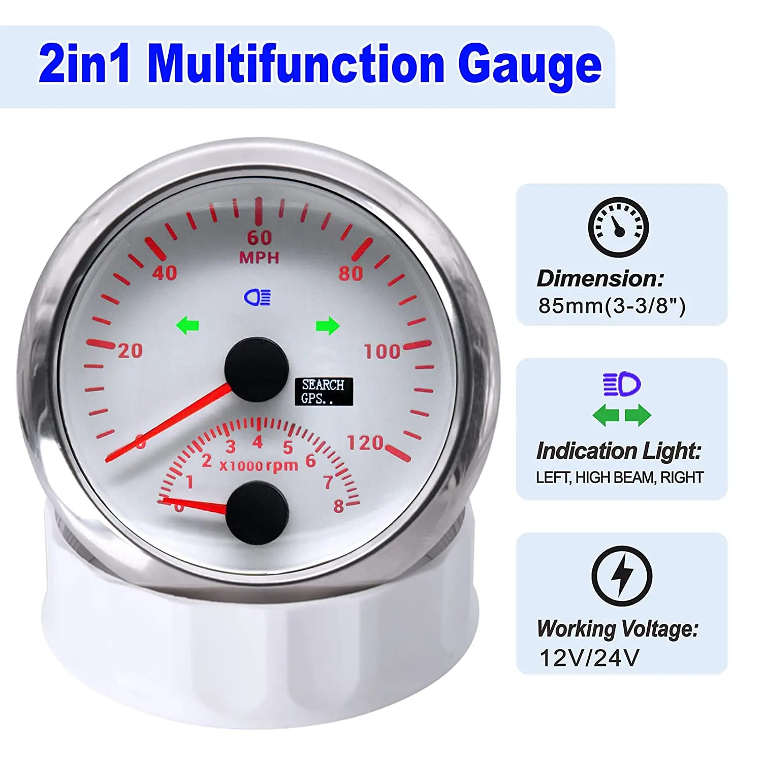 85mm 2 in 1 GPS Speedometer and 0-8000RMP Tachometer