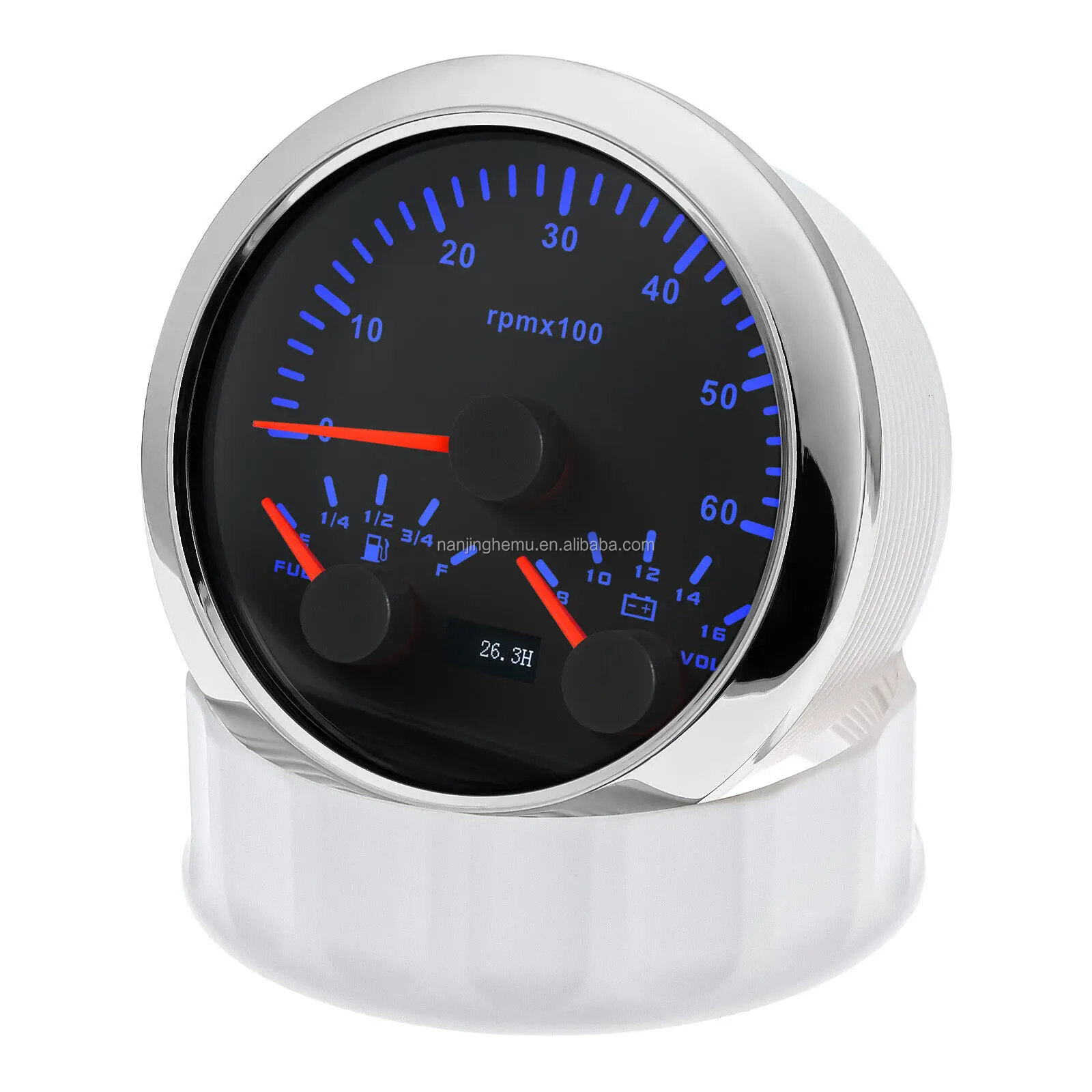 85mm 3In 1 Tachometer 0-6000RPM Fuel Gauge 240-33ohms Voltage 8-16V For Car Boat