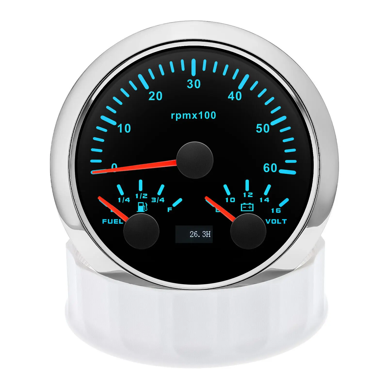 85mm 3In 1 Tachometer 0-6000RPM Fuel Gauge 240-33ohms Voltage 8-16V for Car Boat
