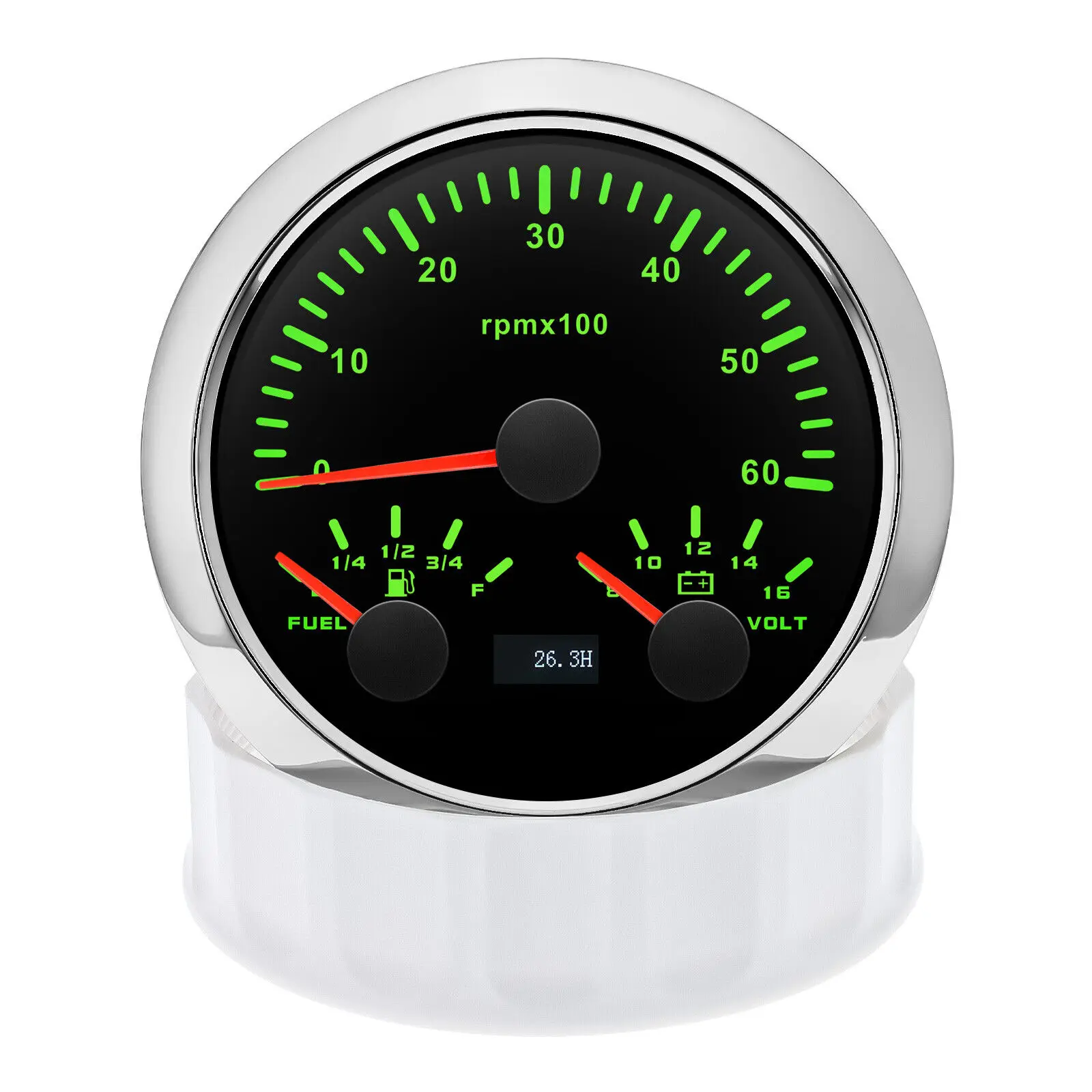 85mm 3In 1 Tachometer 0-6000RPM Fuel Gauge 240-33ohms Voltage 8-16V For Car Boat
