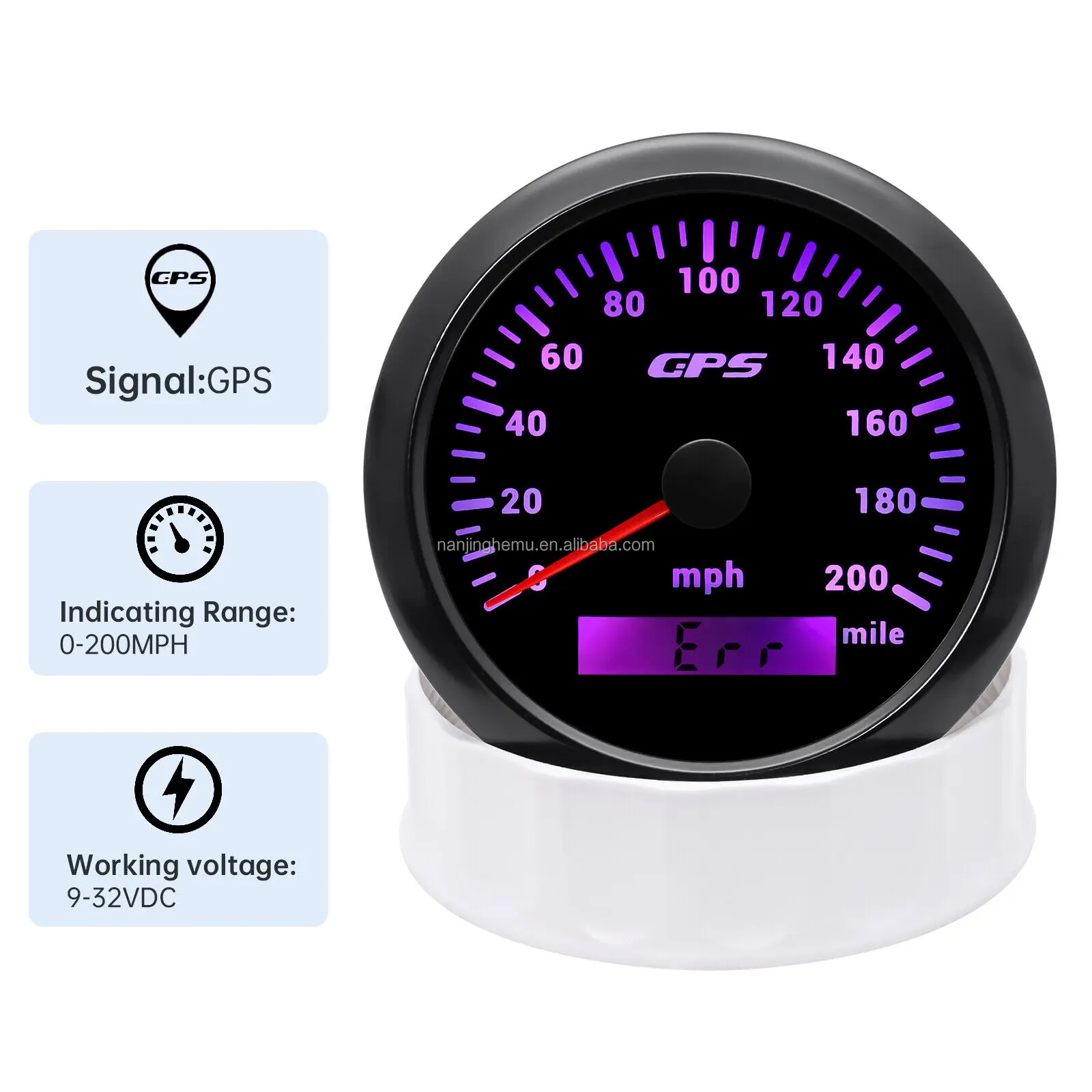 85mm Black Digital GPS Speedometer 0-200MPH Gauge Odometer for Car Boat Truck