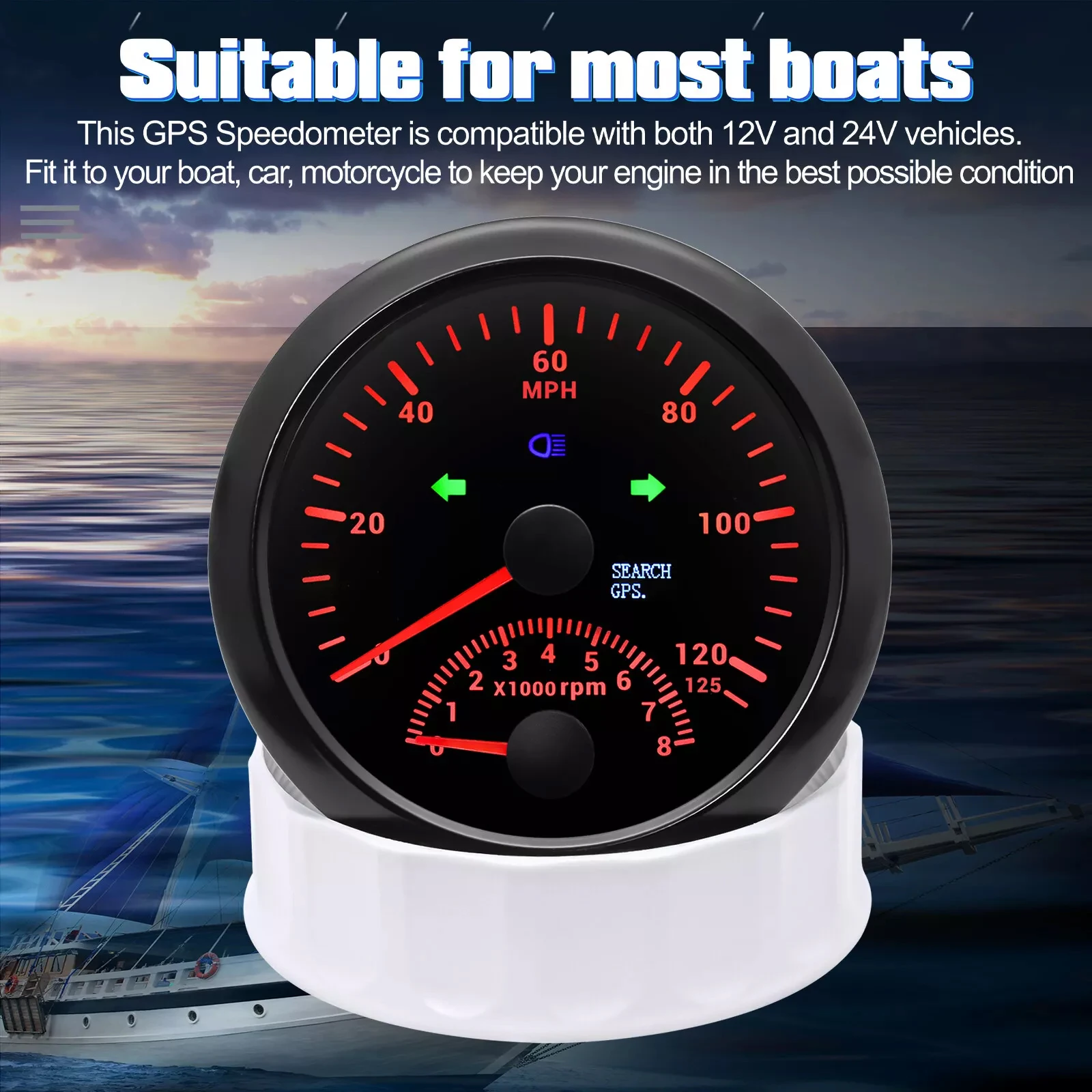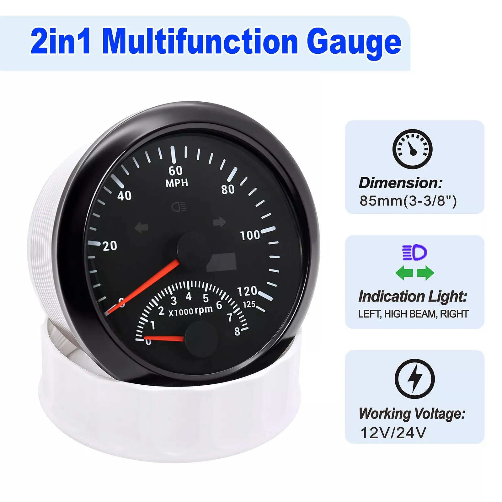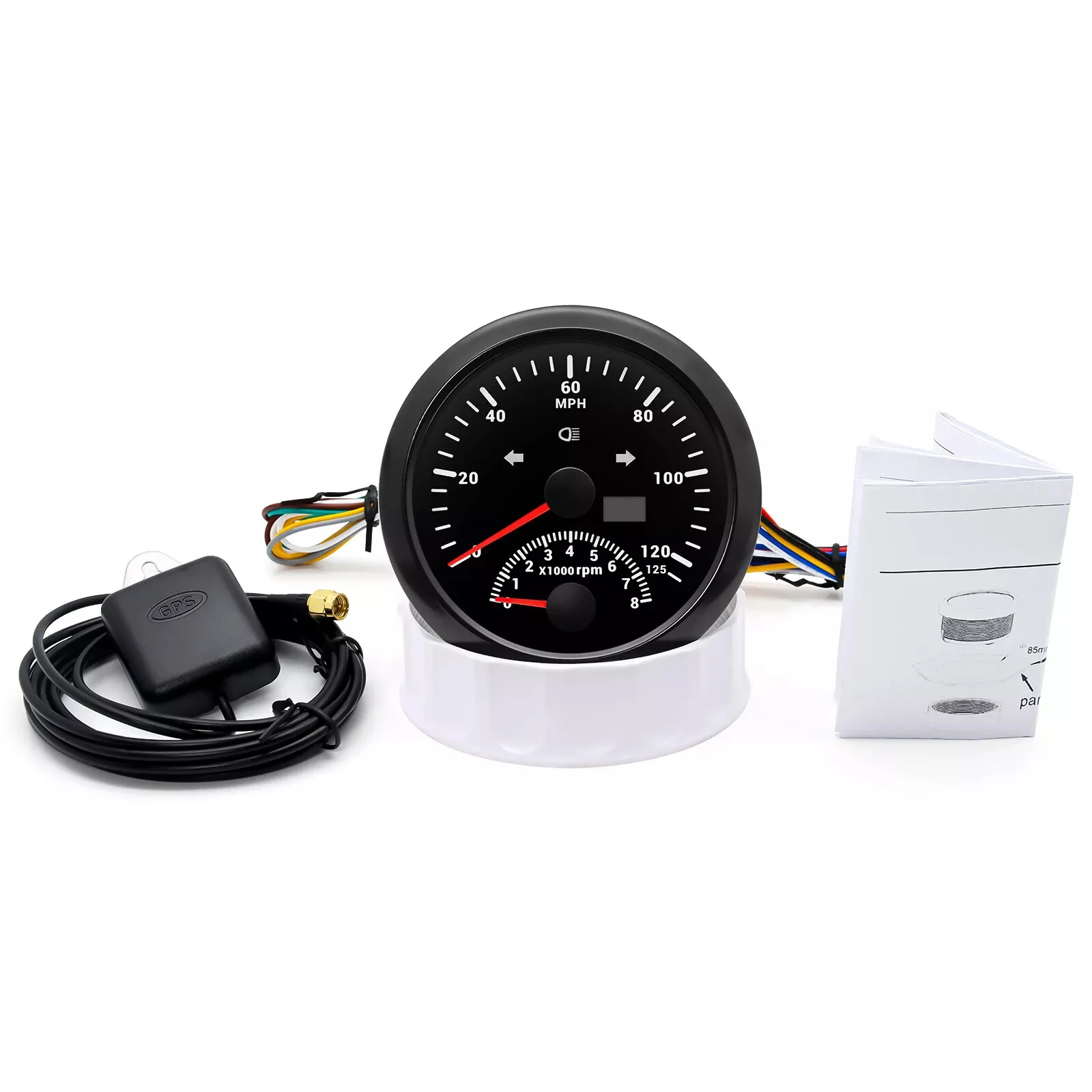 85MM Black GPS Speedometer 125MPH with Tachometer 8000RPM Gauge for Boat Car ATV
