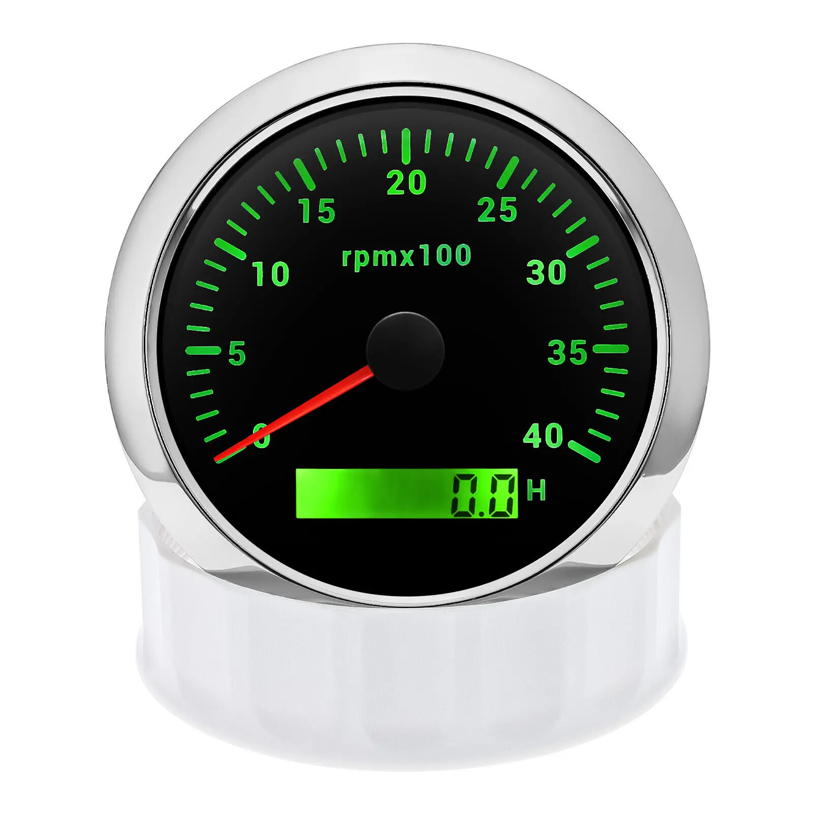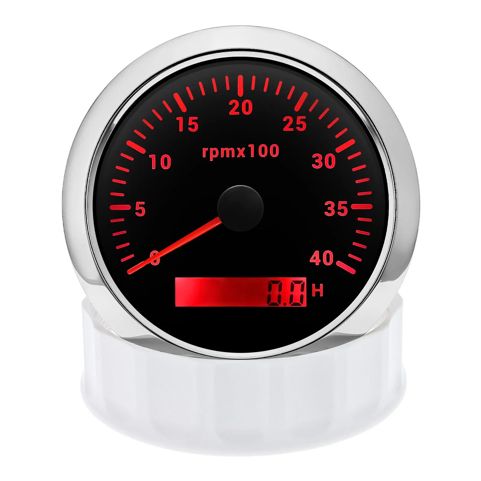??Function??7 Solid Color Settings will meet your requirement. The button on the lens can switch color of light you want-Colors Include Blue. Red. Green. Teal. Purple. White & Yellow. Smoked Tint lens when "off".Color LED Display when "on".??Material??85mm 3-3/8" white Face Tachoneter Gauge with a Magnified Tinted Lens. Red Illuminated needle.bright LED display during the night.??Range?? Tachometer reads from 0 to 4000 RPM. Installs to any 4.6.8.10.12 Cylinder Gas Powered Engine for 9-32V vehicles.??Stability??Boat Tachoneter Meter compatible for all kinds of tacho RPM sensors. and display the rotation speed of the engine.??After-Sale Guarantee??1 x Tachometer Gauge. 1x Cable. 1 x Instruction manual. Please contact us if you are dissatisfied with our products. the response will be taken in 24 hours and provide proper solutions.