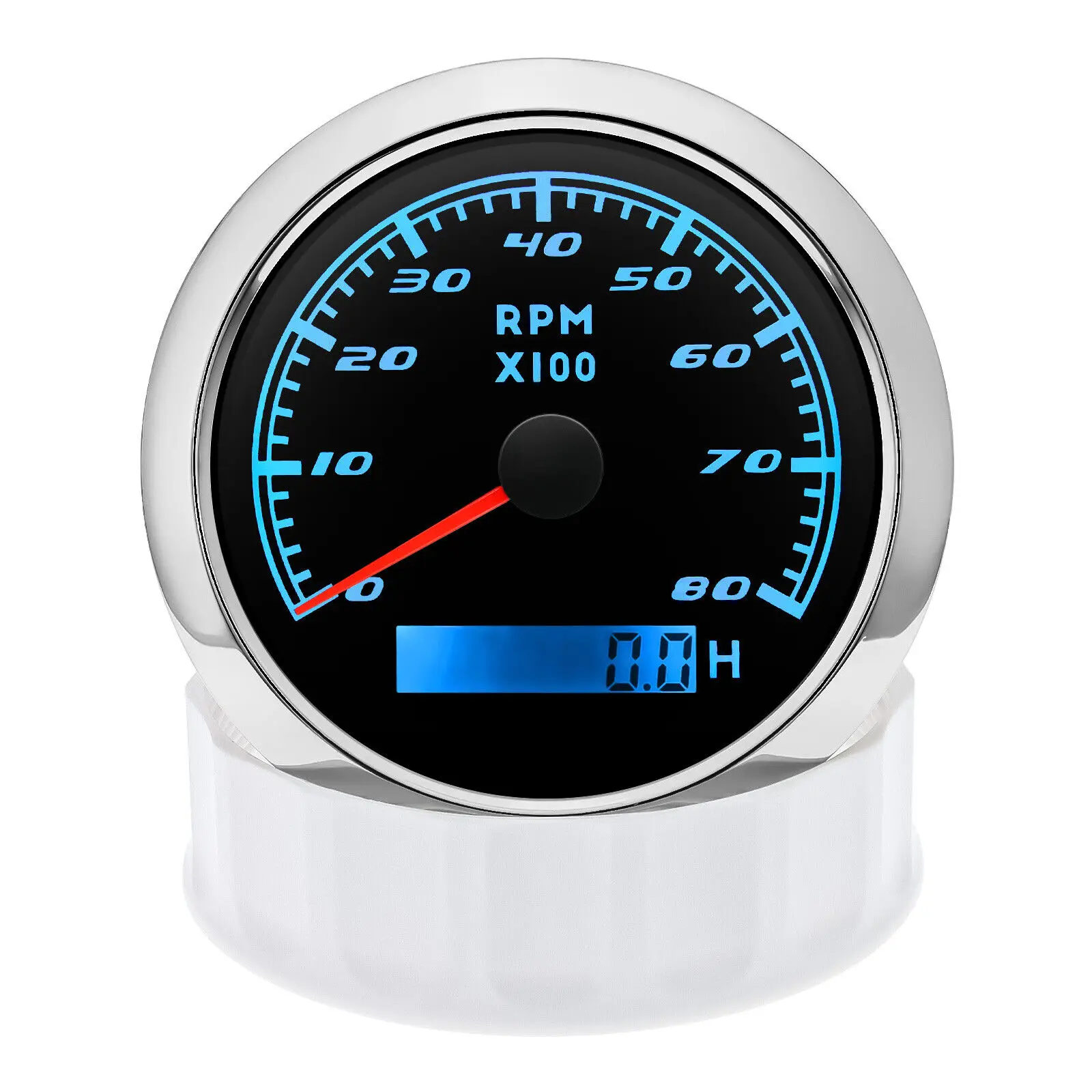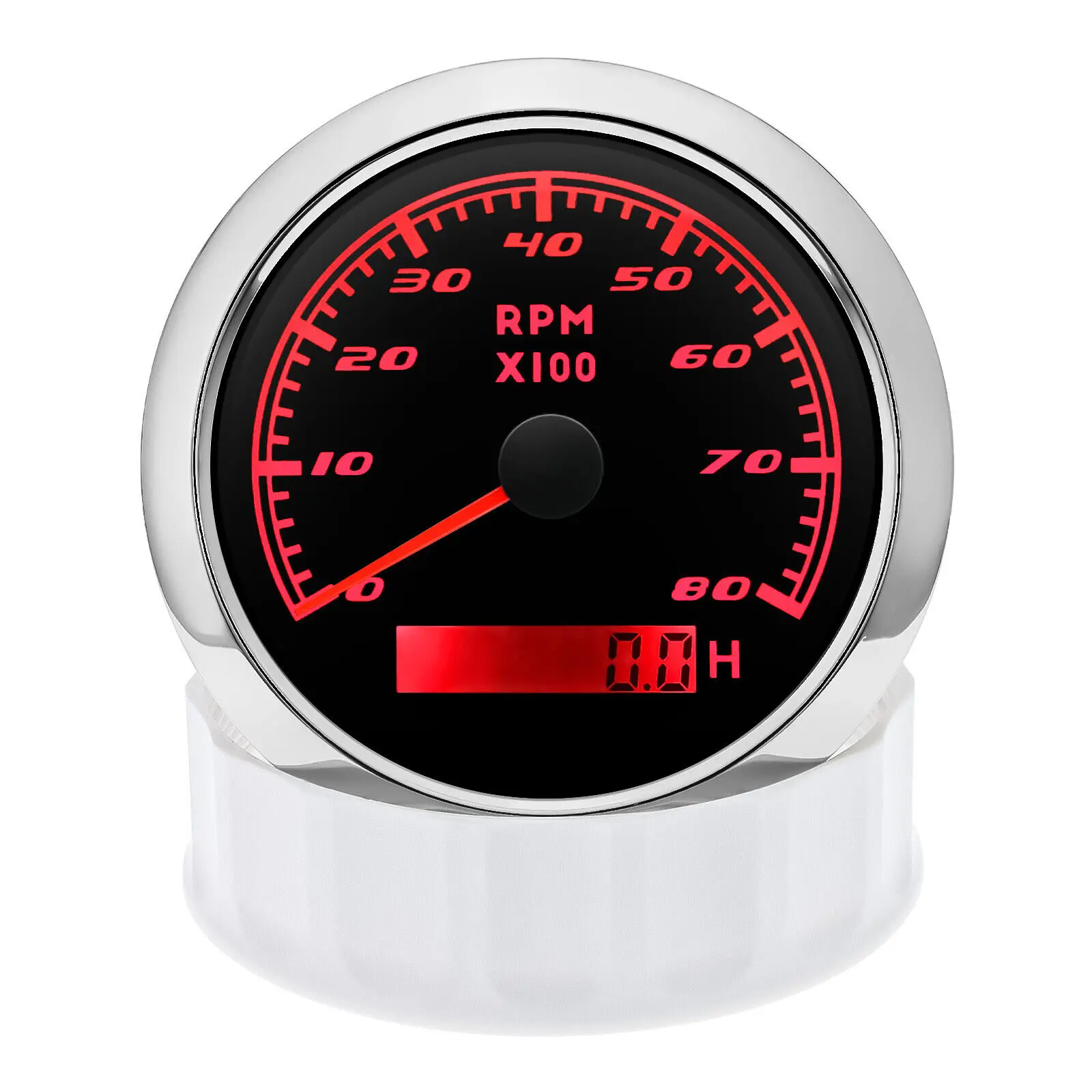 Features:RPM Tachometer Support : Car /Truck/ Boat /Diesel Generator EngineWaterproof:IP67Excellent anti-fogging function;316 Stainless steel bezel with curved glass;Convenient Installation by multi-plug socket connecting way;With curved glass( with anti-fog function).7colors Backlight (red.yellow.orange.green.blue.purple.white).customers can adjust any color that you like.Specification:Size:85mmEngine hours: 0.0-99999.9HWorking voltage: 9-32VDCWaterproof and dustproof grade IP67.Working current:??120mAWorking temperature: -30-70??Storage temperature: -40-85??Backlight: 7 Color backlight(red.yellow.orange.green.blue.purple.white).customers can adjust any color that you like)Indicating Range: 0-8000RPMSignal:Pulse Package Includes:1x Tachometer1X Cable1x Installation Instruction