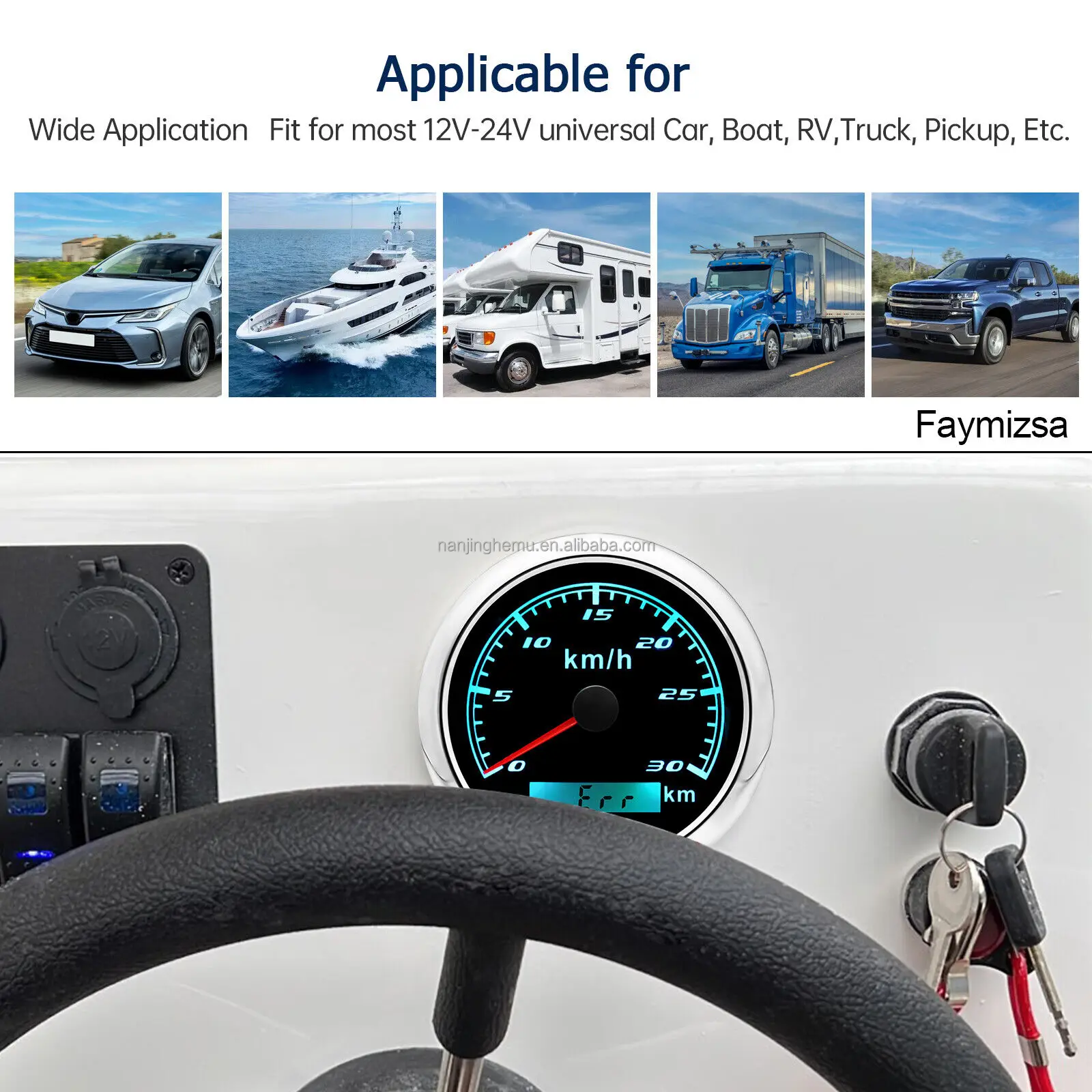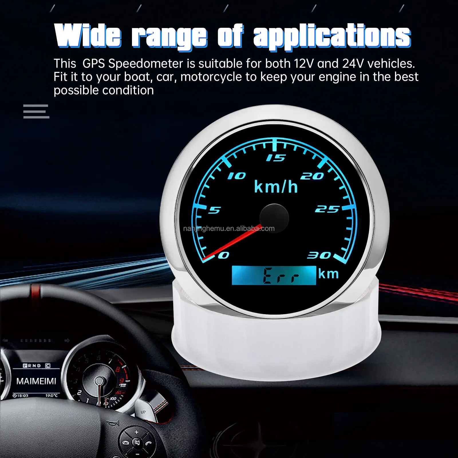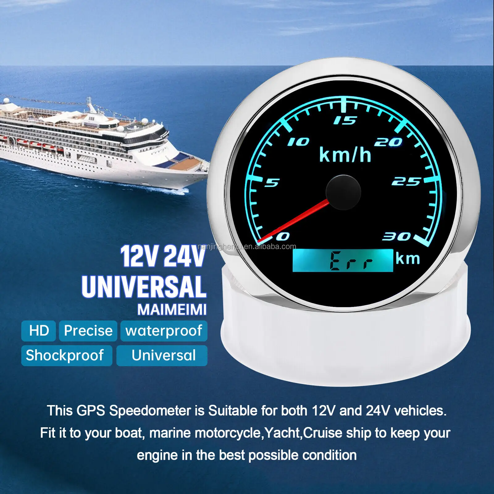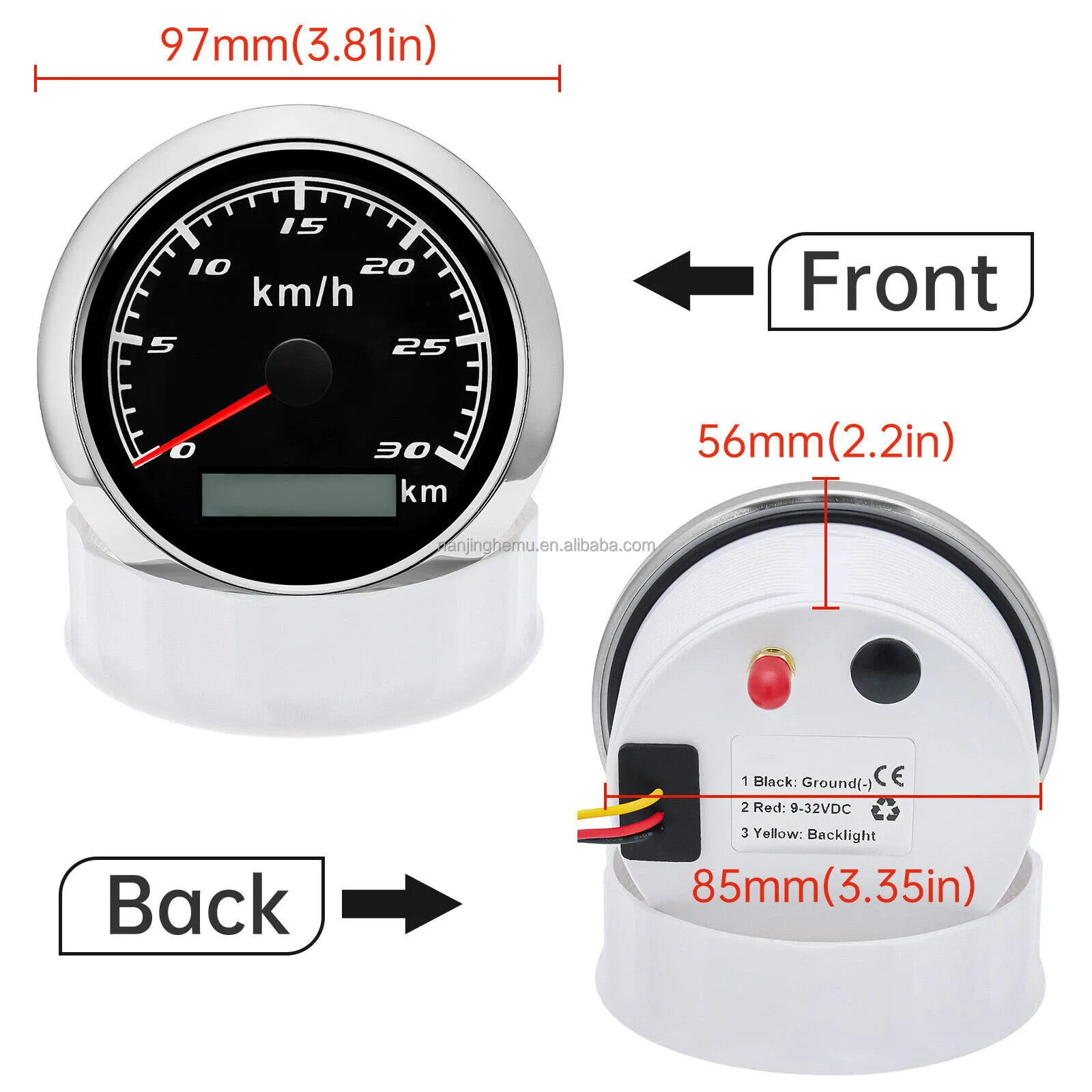 Product Descriptions??High-brightness LED backlight.316 stainless steel for long-term use even in acid-base. humid environment.IP67 waterproof and dust-proof grade.With curved glass( with anti-fog function).Suitable for all kinds of vehicle modification.Using stepper motor drive pointer. accurate display of the engine speed. and with the LCD display clear display mileage.Gauges have many kinds backlight color (red.yellow.orange.green.blue.purple.white).customers can adjust any color that you like.Specifications:Dial: Silver&BlackMaterial: Stainless Steel 316L Bezel + Anti-fog GlassInstall Diameter: Φ85mm or 3-3/8"Signal: GPSWorking Voltage: 9~32V DCWorking Current: ≤100mAOperating Temperature: -30?? ~ 75??Storage Temperature: -40?? ~ 85??Size: 12x8x12cm / 4.72×3.1×4.75 inchIP67 waterproof and dustproof gradeIndication Range: 0-30Km/HBacklight: 7 Colors BacklightPackage Includes:1X 85MM Digital GPS Speedometer Gauge1X Instruction1X GPS Antenna