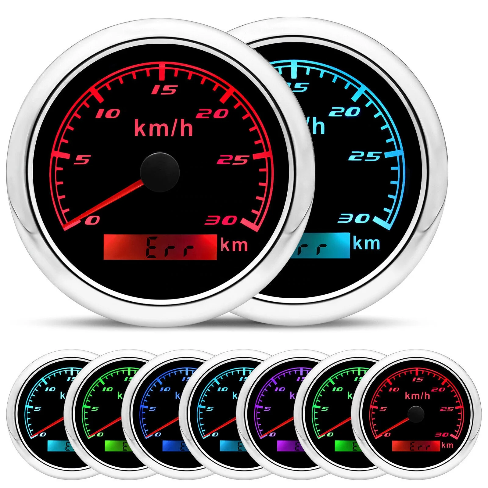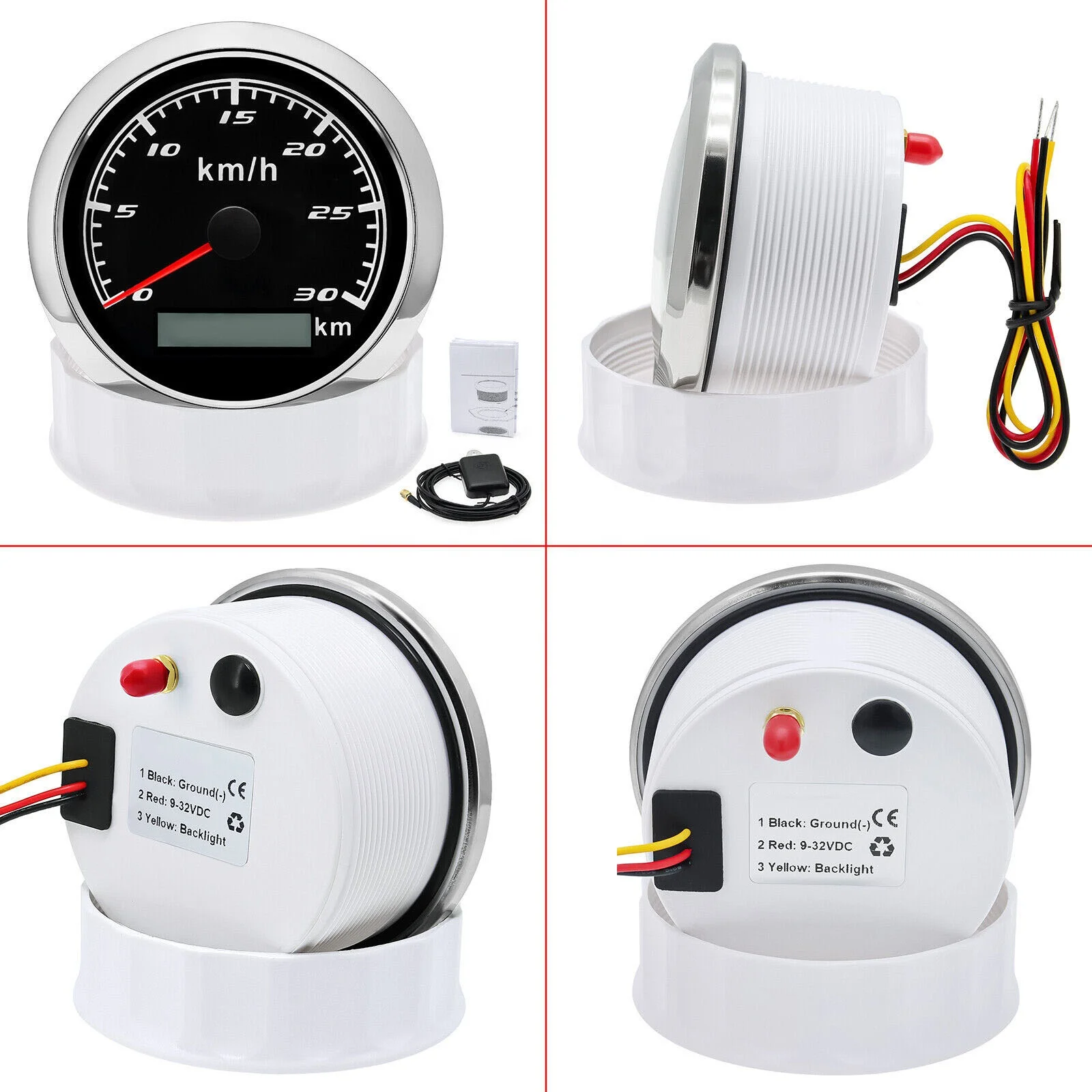 Product Descriptions??High-brightness LED backlight.316 stainless steel for long-term use even in acid-base. humid environment.IP67 waterproof and dust-proof grade.With curved glass( with anti-fog function).Suitable for all kinds of vehicle modification.Using stepper motor drive pointer. accurate display of the engine speed. and with the LCD display clear display mileage.Gauges have many kinds backlight color (red.yellow.orange.green.blue.purple.white).customers can adjust any color that you like.Specifications:Dial: Silver&BlackMaterial: Stainless Steel 316L Bezel + Anti-fog GlassInstall Diameter: Φ85mm or 3-3/8"Signal: GPSWorking Voltage: 9~32V DCWorking Current: ≤100mAOperating Temperature: -30?? ~ 75??Storage Temperature: -40?? ~ 85??Size: 12x8x12cm / 4.72×3.1×4.75 inchIP67 waterproof and dustproof gradeIndication Range: 0-30Km/HBacklight: 7 Colors BacklightPackage Includes:1X 85MM Digital GPS Speedometer Gauge1X Instruction1X GPS Antenna