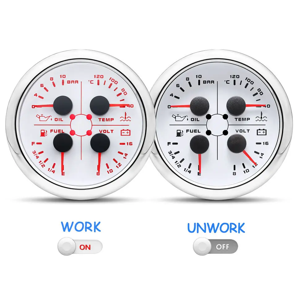 85mm Four in One Oil Pressure Gauge Kit Plus OLED Digital DC Volt Meter 12V Oil Temp Meter Gauge