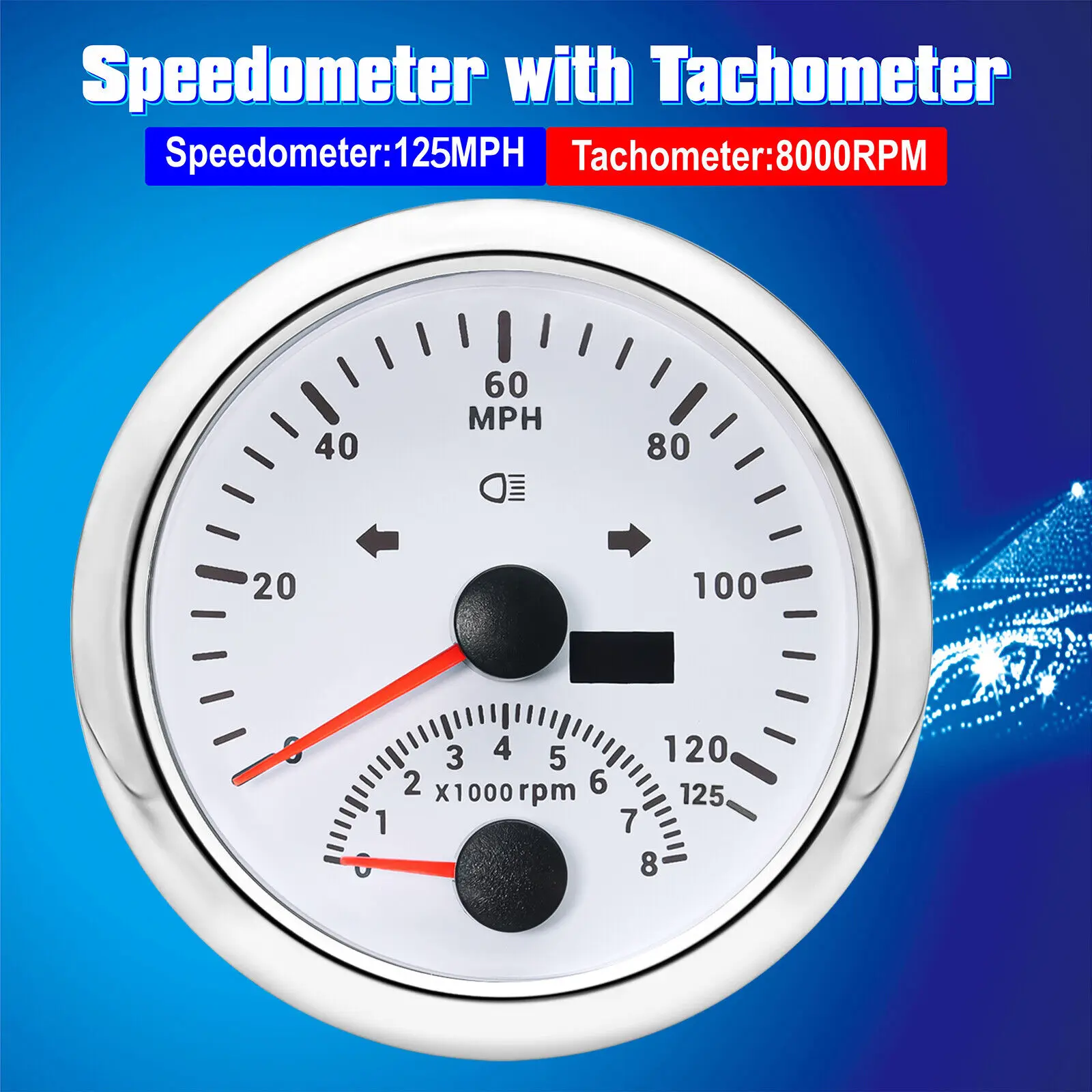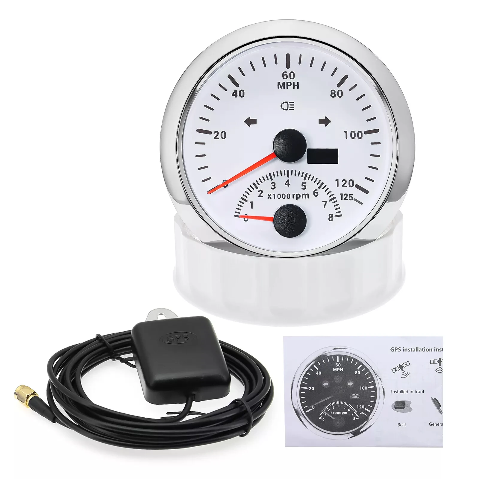 item | 85mm GPS Speedometer 125MPH with Tachometer 8000RPM Gauge Waterproof for Boat |