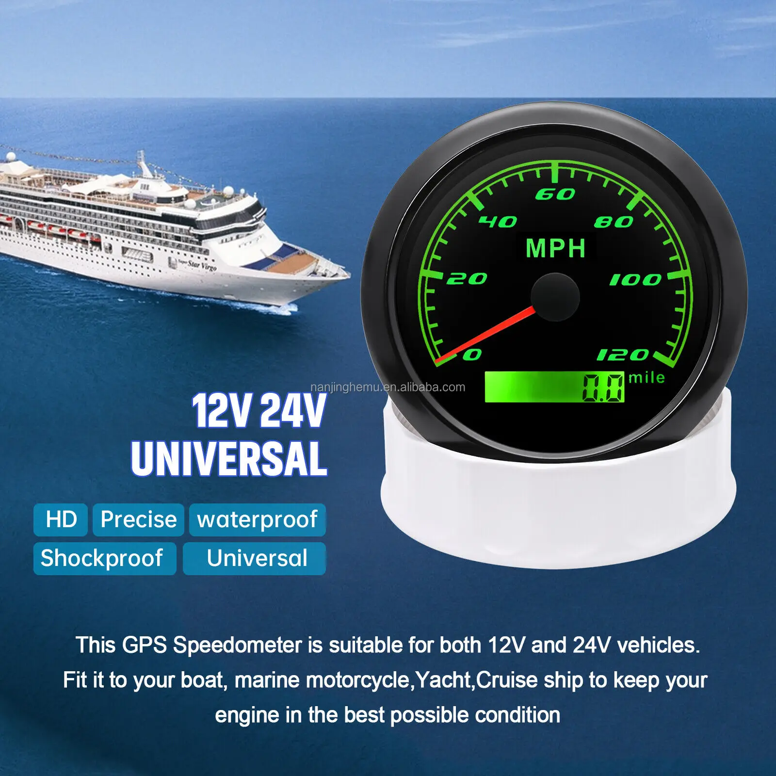 85mm Marine Boat GPS Speedometer Odometer 0-15Knots 0-17MPH 12V/24V