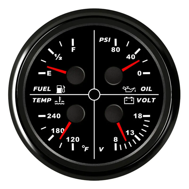 85MM 4 In 1 Multifunction Fuel Level Temp Oil Pressure Voltage Gauge
