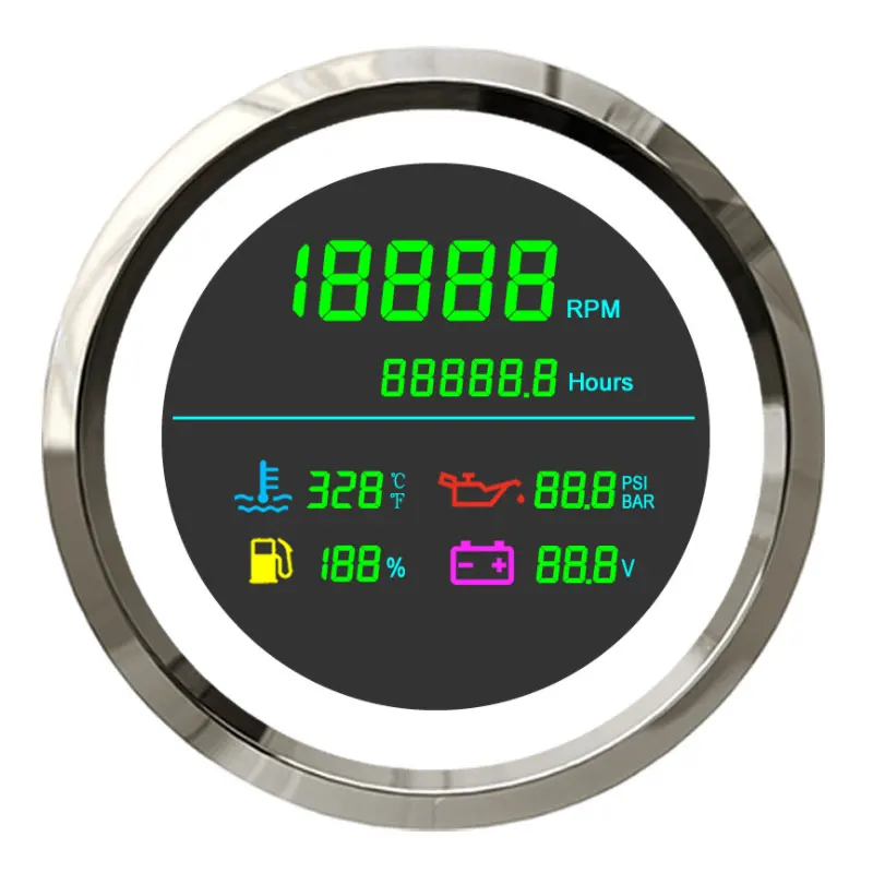 Be the first to review “85mm Six in One Multifunction Gauge Tachometer/Hour Meter/Water Temperature/Stainless Oil Pressure Gauges” Cancel reply