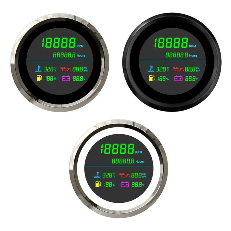 85mm Six in One Multifunction Gauge Tachometer/Hour Meter/Water Temperature/Stainless Oil Pressure Gauges