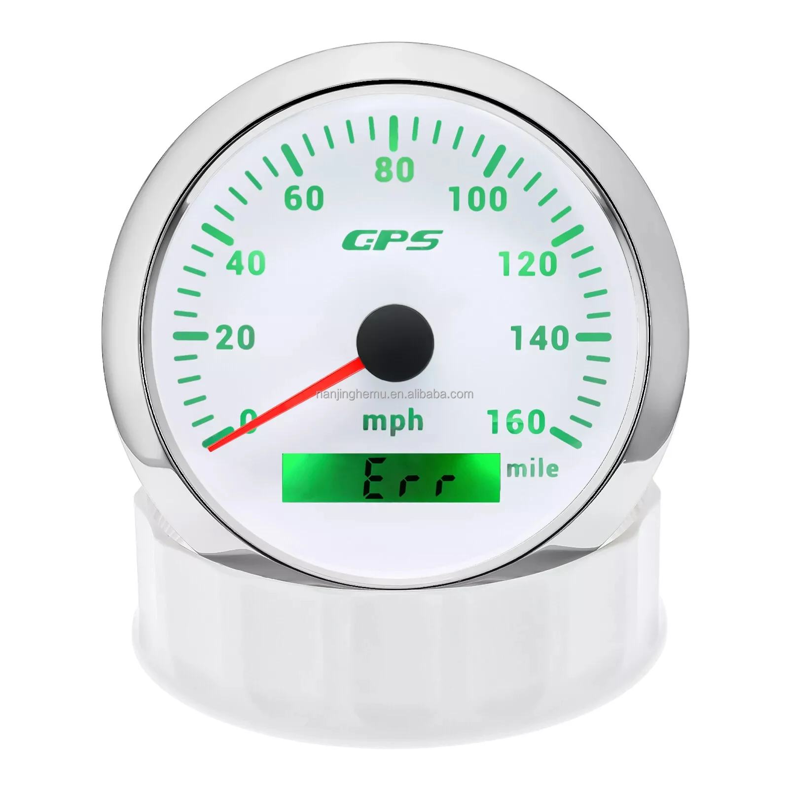 Feature:IP67 waterproof and dust-proof grade.With curved glass( with anti-fog function).Suitable for all kinds of vehicle modification.316 stainless steel for long-term use even in acid-base.humid environment.Using stepper motor drive pointer.accurate display of the engine speed.and with the LCD display clear display mileage.Gauges have many kinds backlight color(red.yellow.orange.green.blue.purple. white).customers can adjust any color that you like.Specification:Material:Stainless Steel 316L Bezel+Anti-fog GlassInstall Diameter:Φ85mm or 3-3/8"Signal:GPSWorking Voltage:9~32V DCWorking Current: ≤100mAOperating Temperature:-30?? ~ 75??Storage Temperature:-40?? ~ 85??P67 waterproof and dustproof gradeIndication Range:0-160MPHBacklight:7 Colors BackligtPackage Included: (as the picture shows)1 X 85MM Digital GPS Speedometer Gauge1 X Instruction1 X Wire Harness1 X GPS Antenna