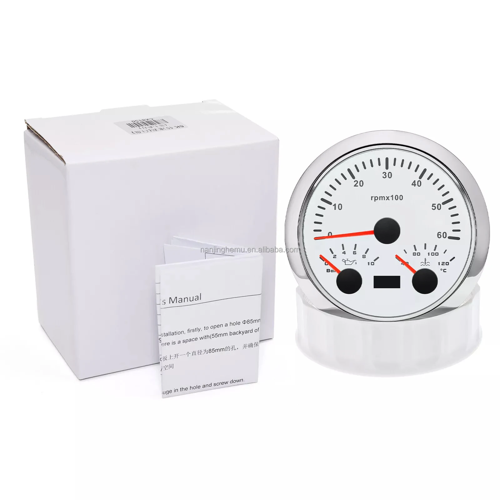 Product Name | 85mm White Tachometer 6000RPM With Oil Pressure 10Bar Water Temp Gauge For Boat |