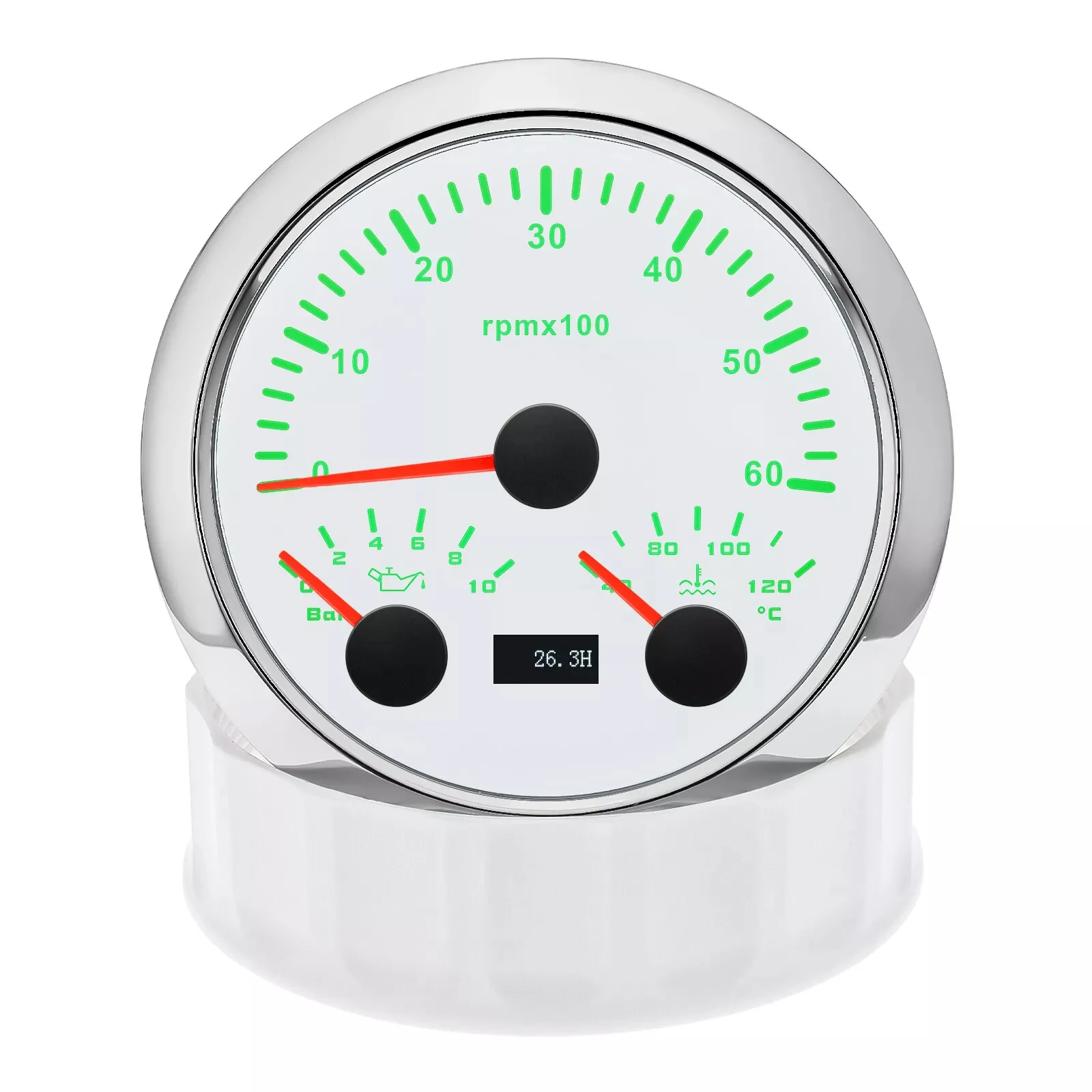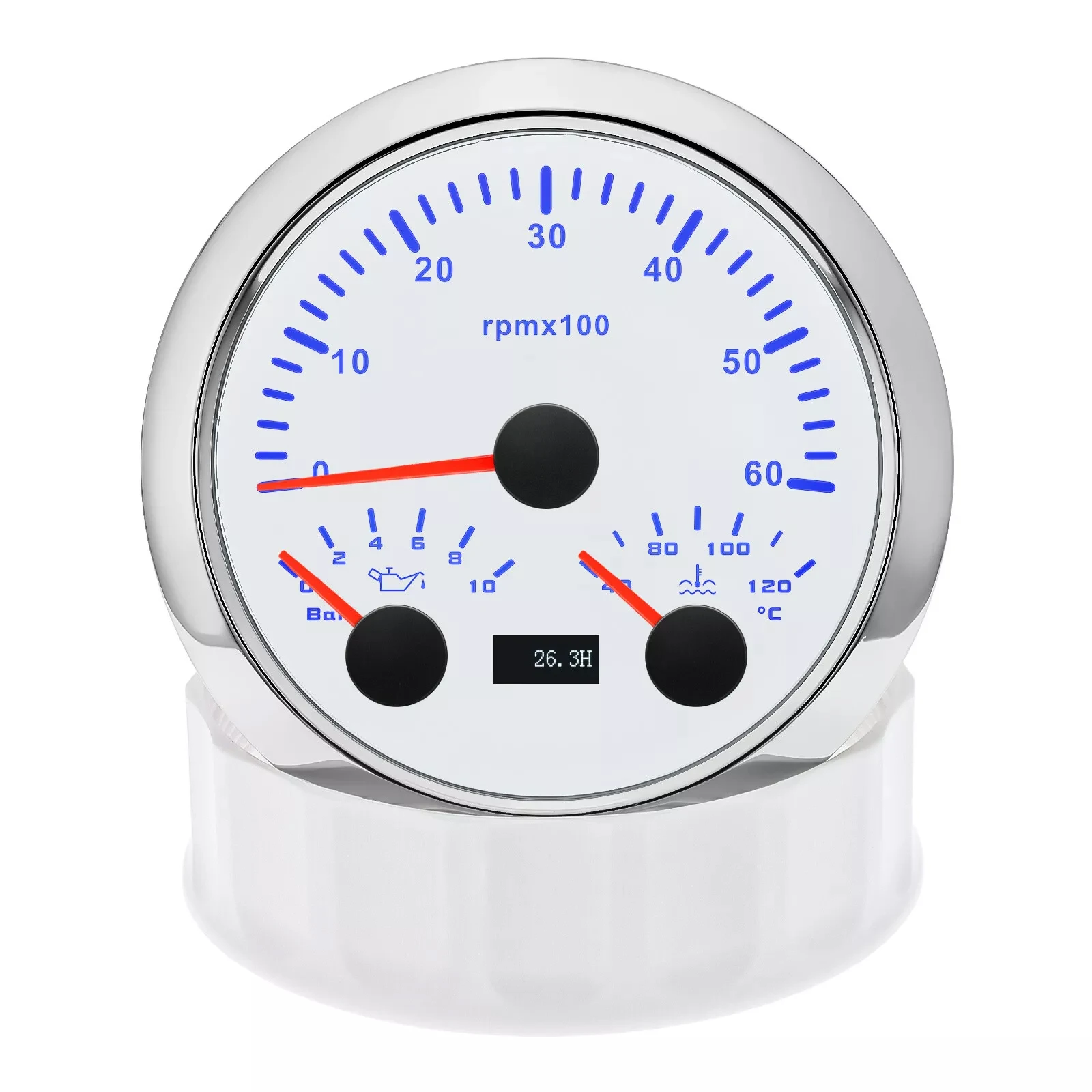 Product Name | 85mm White Tachometer 6000RPM With Oil Pressure 10Bar Water Temp Gauge For Boat |