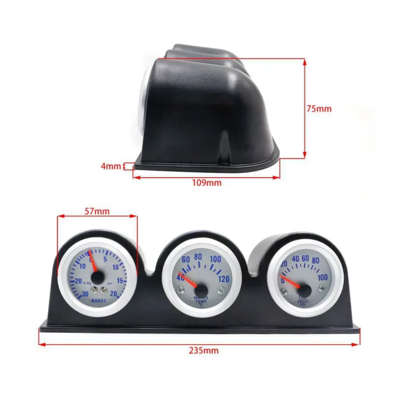 Product Name | Automobile refitted instrument 52mm booster water temperature and oil pressure gauge three in one combination instrument triple meter |