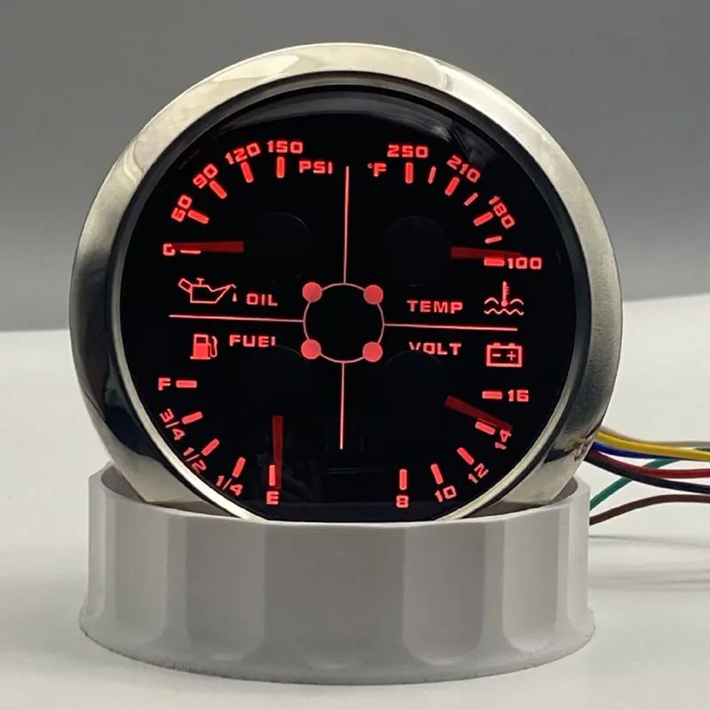 Black Silver Boat 4 in 1 Gauge Marine Fuel Level Voltmeter Water Temperature Gauge Oil Pressure Gauge
