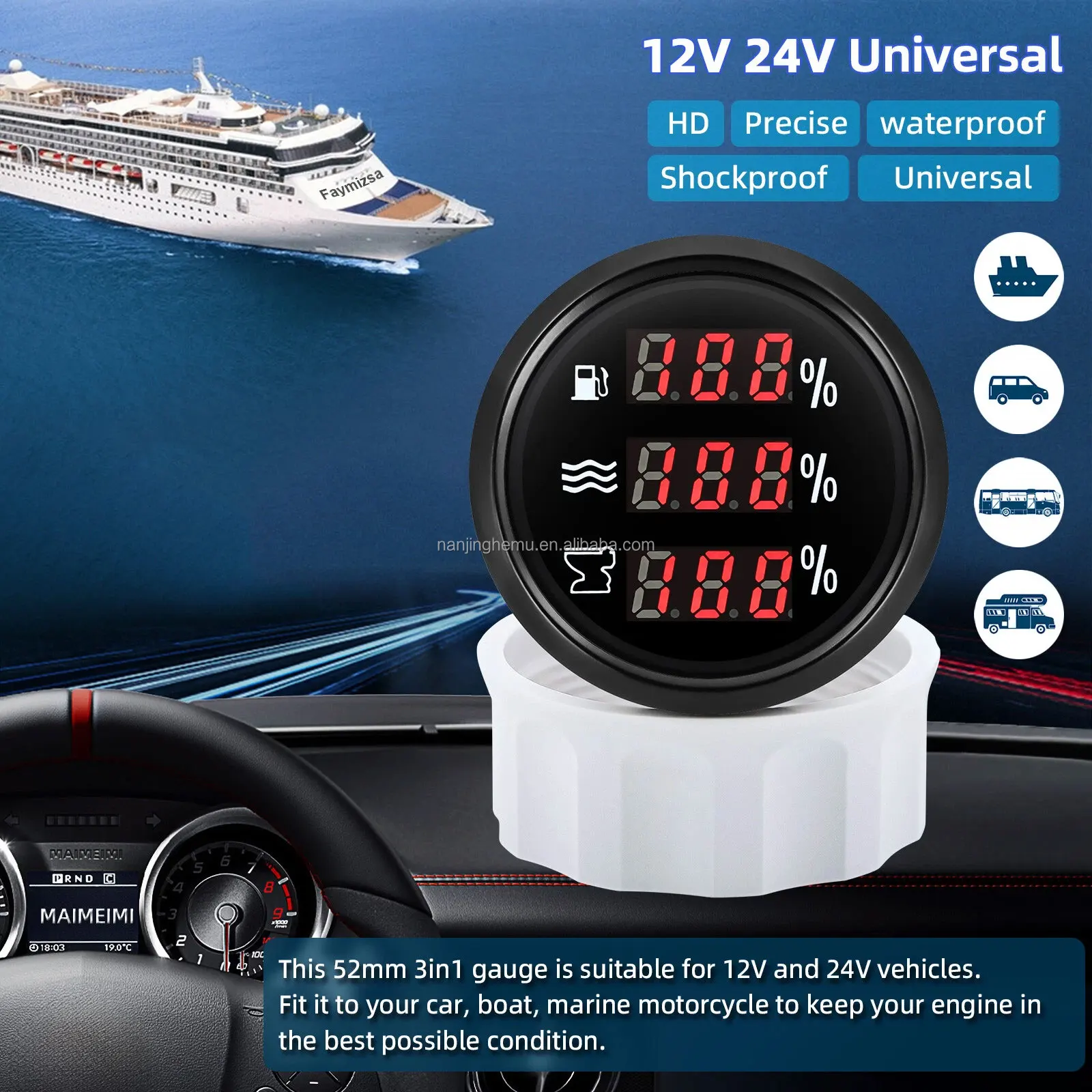 Digital 52mm 3in1 Multi-Function Digital Gauge Water Level Fuel Level Sewage Level Gauge