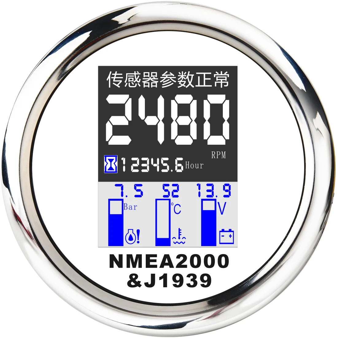 Digital NMEA2000 & J1939 RPM Tachometer Gauge with Oil Pressure/Voltmeter/Water Temperature/Hour Meter Display