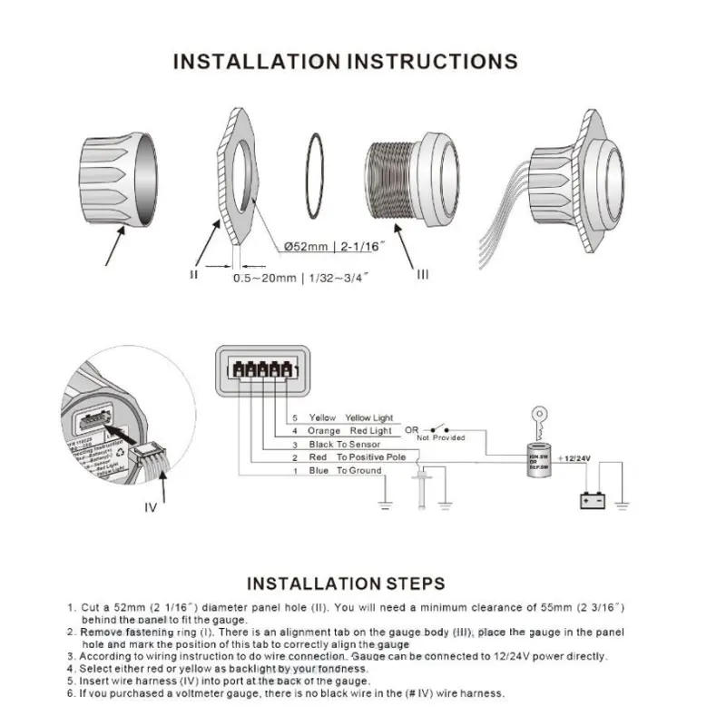 1.Be suitable for all kinds of fuel level sensors with same signal. and display liquid level of the oil tank2.Use moving-magnet principle to drive the needle. featuring good endurance and anti-vibration.3.IP67 waterproof and dustproof grade4.Stepper motors used for full range of stepping gauges. great feature with its less power consumption. longer life. higher precision. etc.5.With curved glass (with anti-fogging function)6.With ultra-wide working voltage design( long-term operating voltage: 9-32V. Maximum up to: 36V (≤ 1 min)).