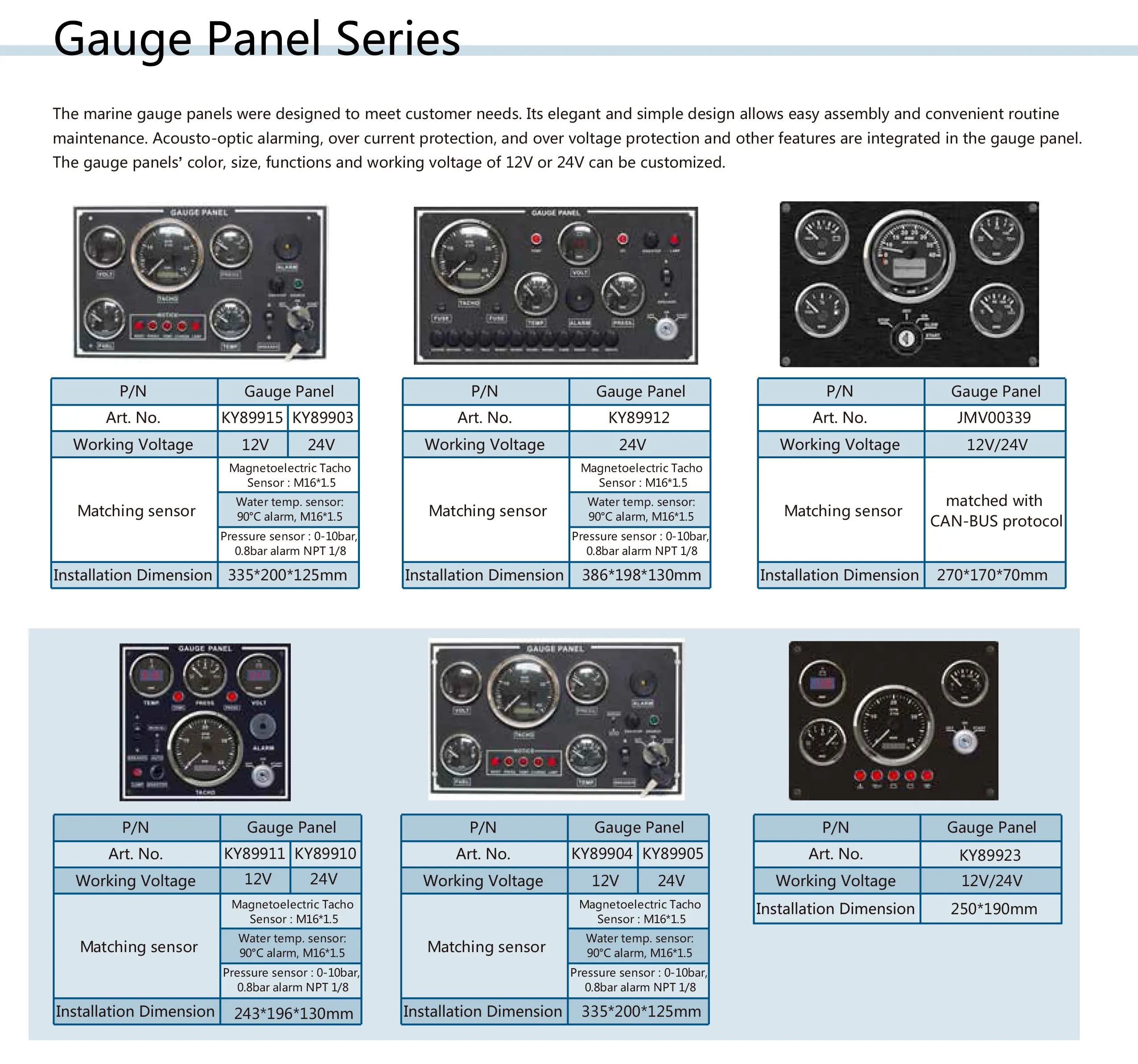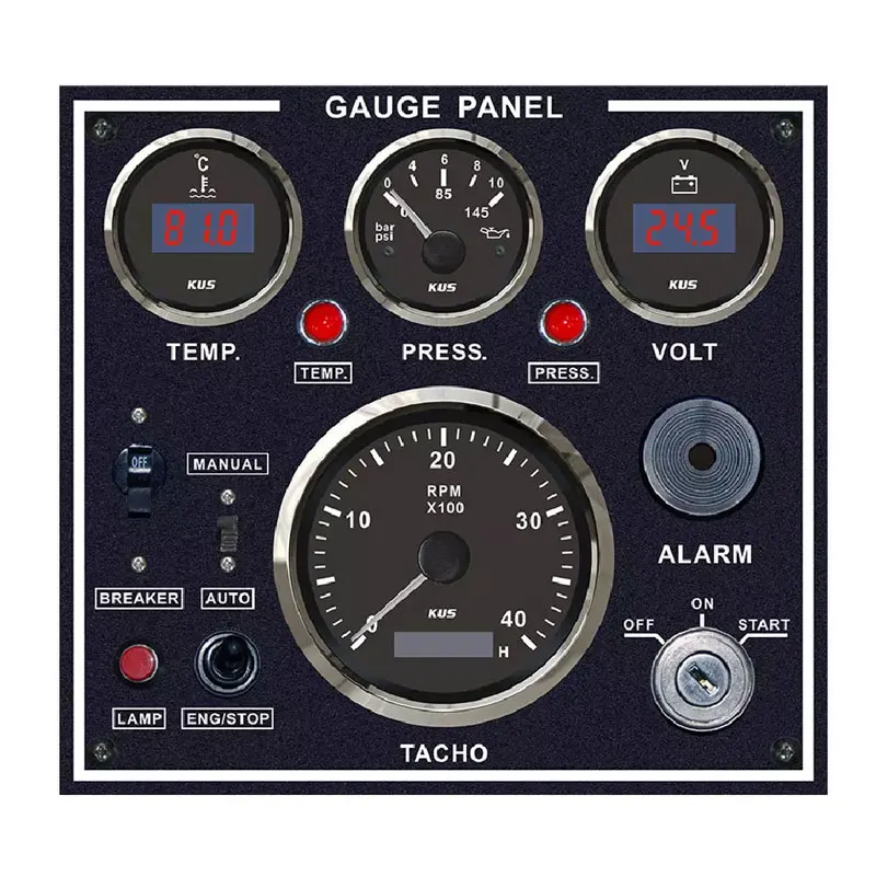 Item | KUS Multi-function Gauge Panel 12V/24V Engine Panel Instrument Assembly with 5 Gauges and Ignition Key 335*200mm For Boat Car |
