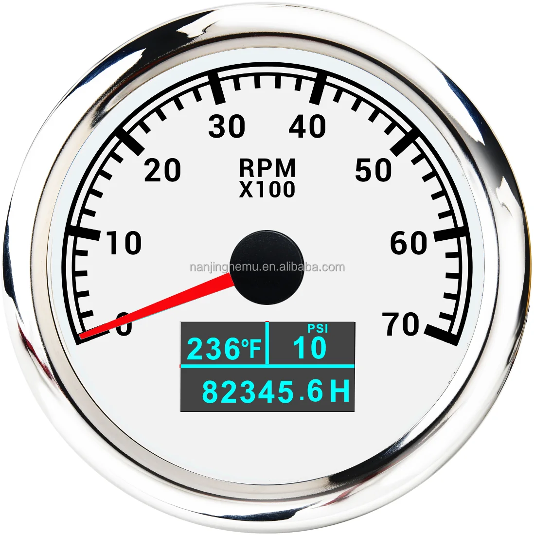 1.Be suitable for all kinds of tacho RPM sensors. and display the rotation speed of the engine.2.Use moving-magnet principle to drive the needle. featuring good endurance and anti-vibration.3.IP67 waterproof and dustproof grade4.Stepper motors used for full range of stepping gauges. great feature with its less power consumption. longer life. higher precision. etc.5.With curved glass (with anti-fogging function)6.With ultra-wide working voltage design( long-term operating voltage: 9-32V. Maximum up to: 36V (≤ 1 min)).