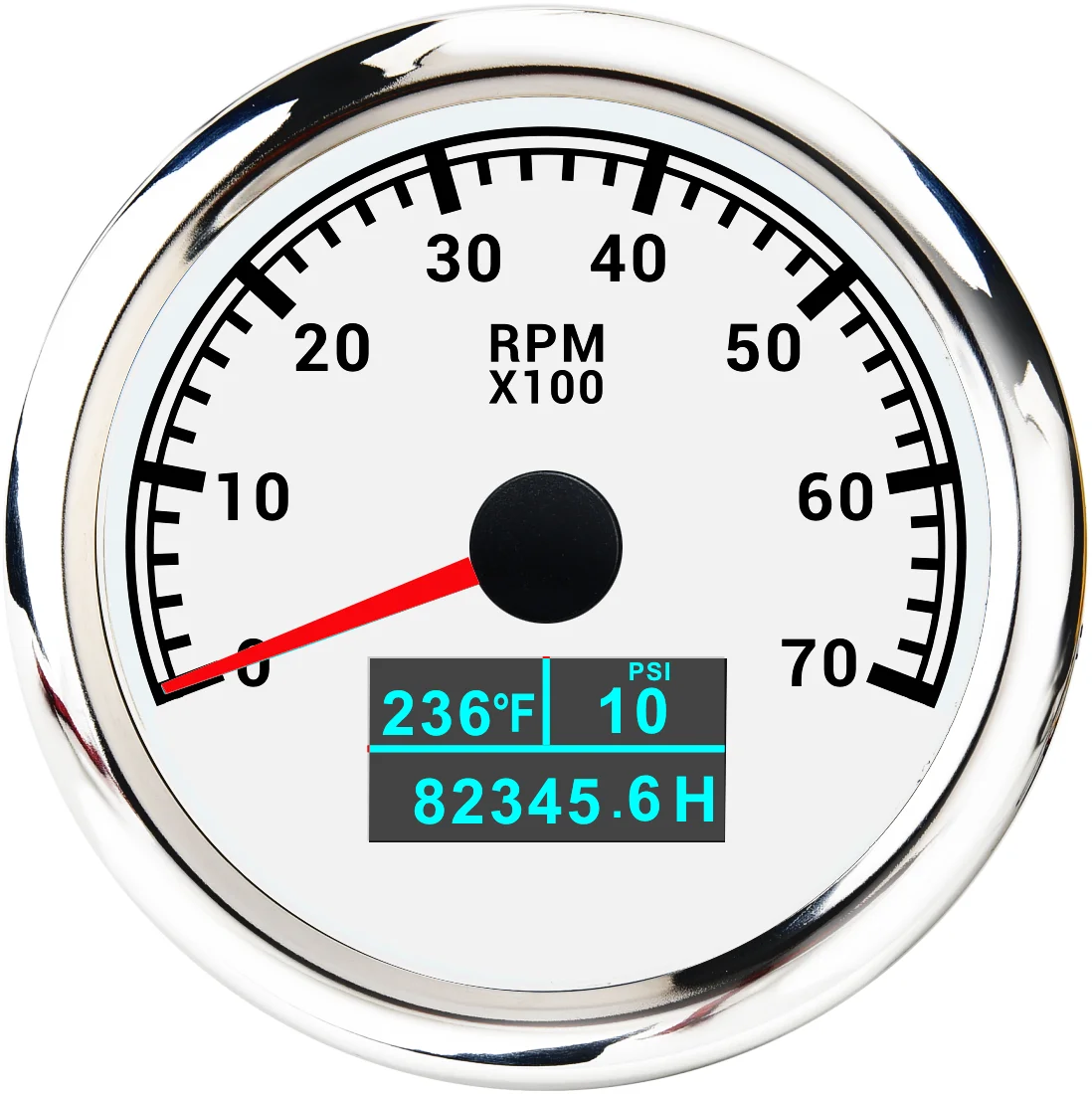1.Be suitable for all kinds of tacho RPM sensors. and display the rotation speed of the engine.2.Use moving-magnet principle to drive the needle. featuring good endurance and anti-vibration.3.IP67 waterproof and dustproof grade4.Stepper motors used for full range of stepping gauges. great feature with its less power consumption. longer life. higher precision. etc.5.With curved glass (with anti-fogging function)6.With ultra-wide working voltage design( long-term operating voltage: 9-32V. Maximum up to: 36V (≤ 1 min)).