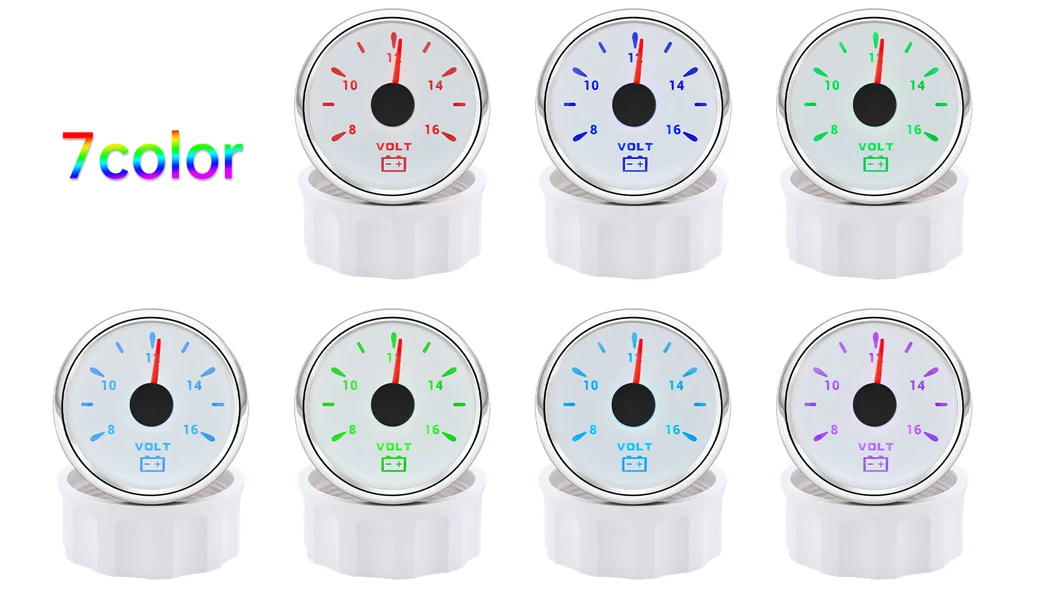 52mm/2Inch 7 Colors LED Volt Voltage Car Gauge For Universal Car Boat 18-32V
