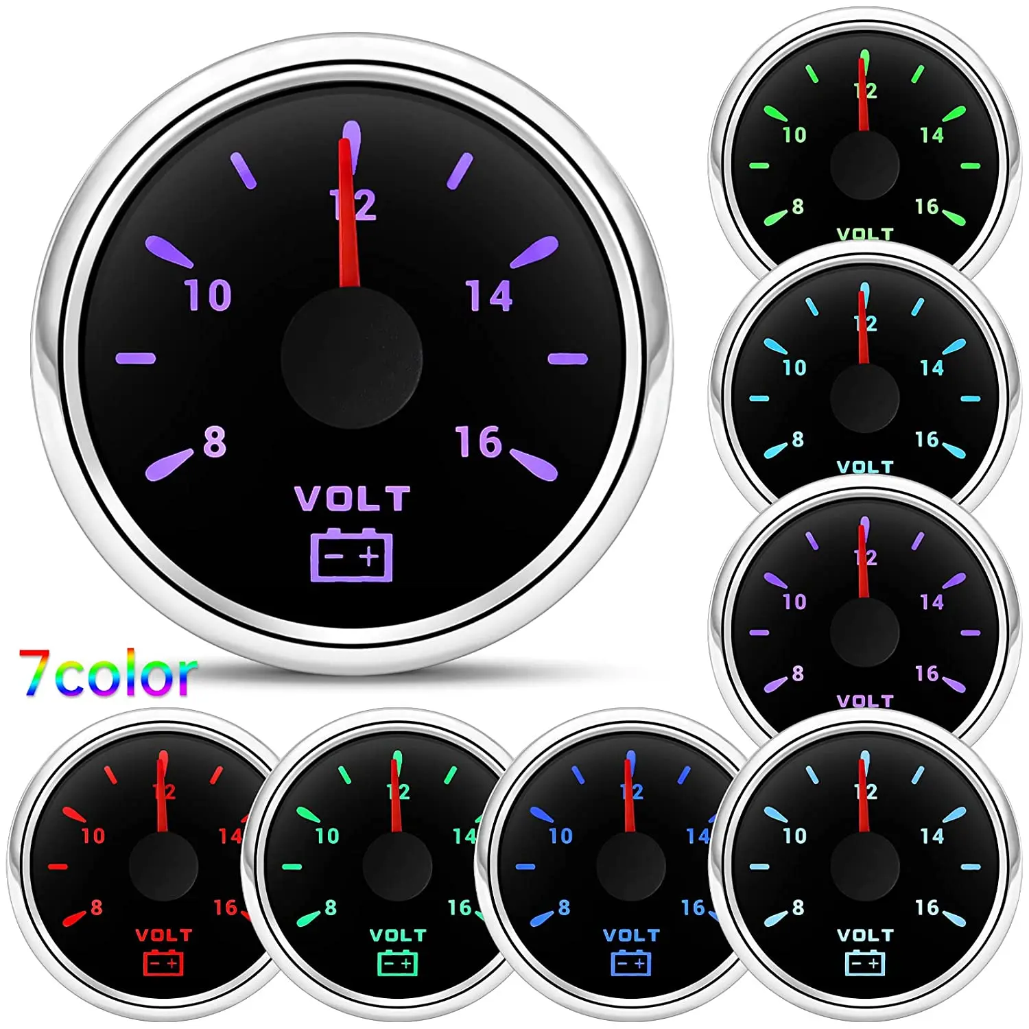 Name | 52mm/2Inch 7 Colors LED Volt Voltage Car Gauge For Universal Car Boat 18-32V. 8-16V |