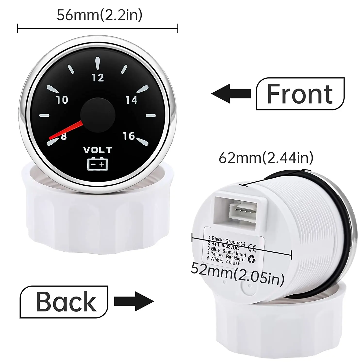 Marine 52mm VOLTAGE 12V VOLT GAUGE METER DIAL Car Racing Sport Boat Marine 8-16V