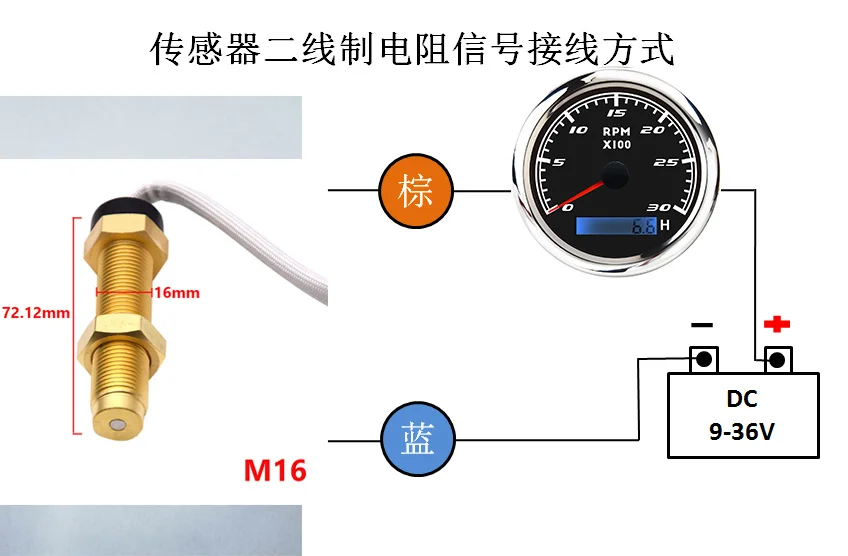 1.Be suitable for all kinds of tacho RPM sensors. and display the rotation speed of the engine.2.Use moving-magnet principle to drive the needle. featuring good endurance and anti-vibration.3.IP67 waterproof and dustproof grade4.Stepper motors used for full range of stepping gauges. great feature with its less power consumption. longer life. higher precision. etc.5.With curved glass (with anti-fogging function)6.With ultra-wide working voltage design( long-term operating voltage: 9-32V. Maximum up to: 36V (≤ 1 min)).