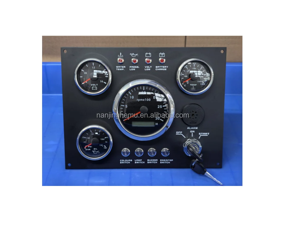 Features: | The gauge can be change: Tachometer with Digital Hour Meter:0-3000/4000/6000/7000/8000RPM Water Temperature gauge:40-120degree Oil Pressure gauge:0-5bar/0-10bar Volt meter:8-16V/16-32V Marine grade push button Switch (Engine Stop or Pre-heat) Marine grade Ignition key Sealed Key Switch. 4-position With Anti-restart 10A at 12V Four positions: Accessory – Off – Ignition/Accessory – Start. Spring return to Off. Key switch is constructed from engineering thermoplastic and is fully sealed using O-rings and ultrasonic welding to protect switch to ip67 (with connector installed). Plastic face nut and nickel-plated brass backing nut. Supplied with two matching keys. and with protective key boot. 2 tone Alarm Pizzo Siren |