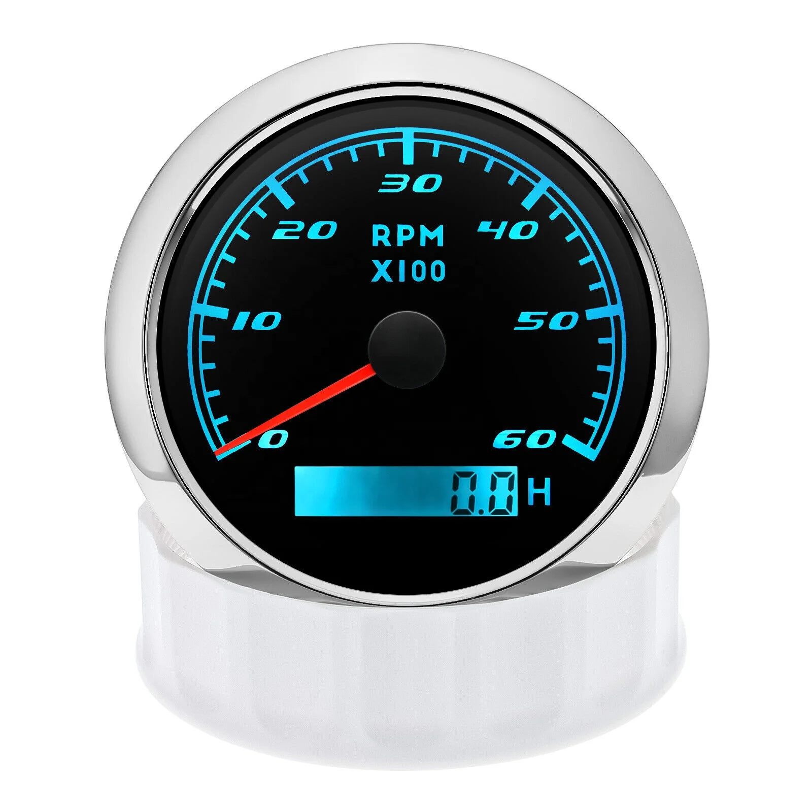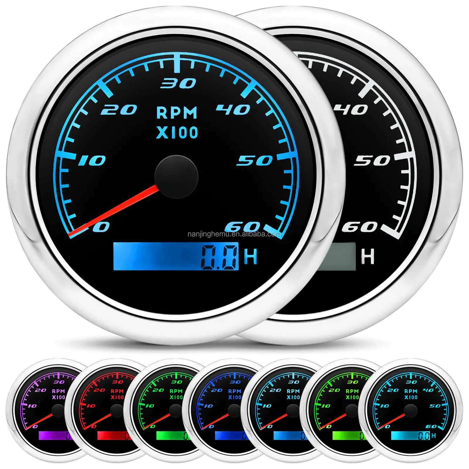 Tachometer RPM Gauge With LED Hour meter 0-6000RPM 12V/24V With 7 Backlight