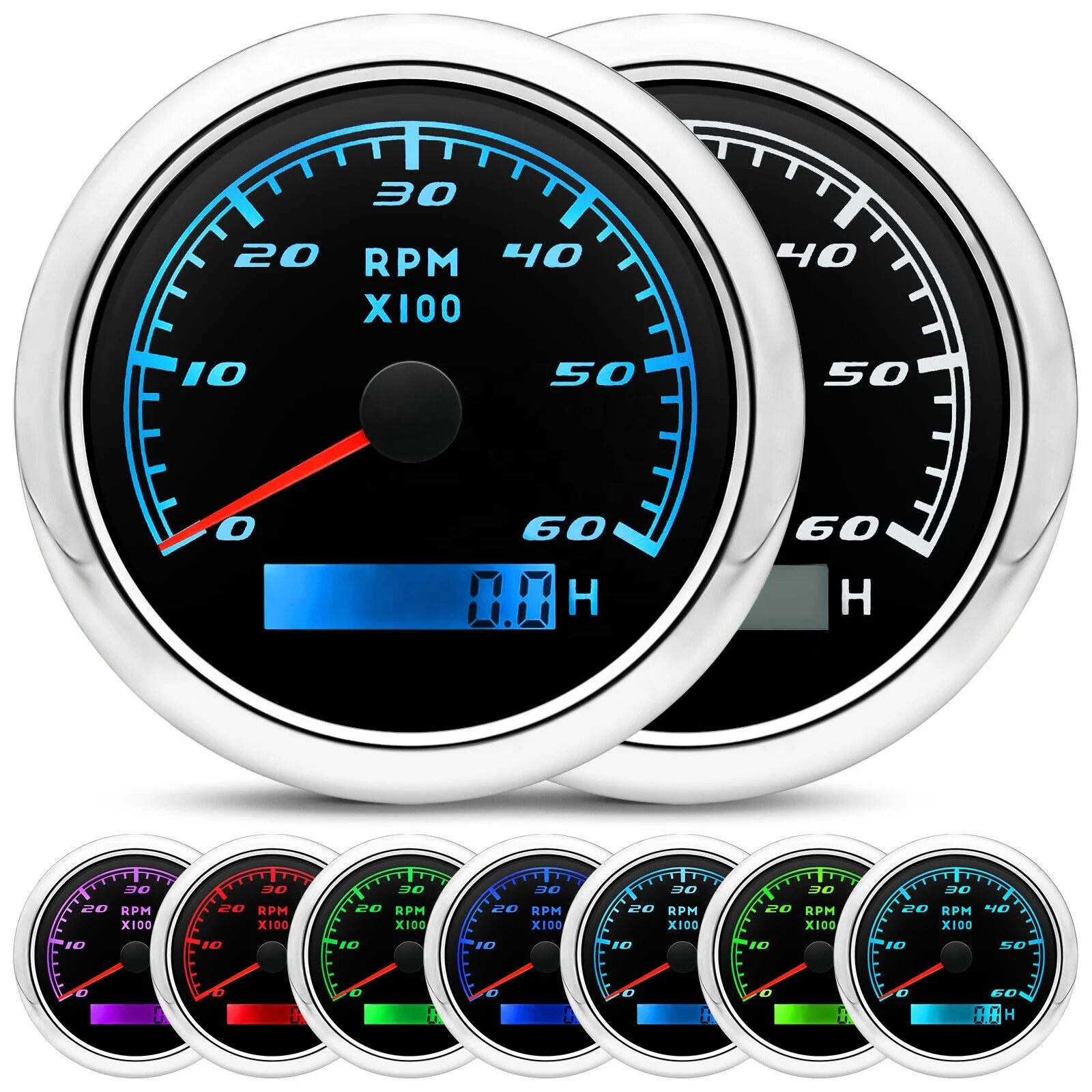 Tachometer RPM Gauge With LED Hour Meter 0-6000RPM 12V/24V With 7 Backlight