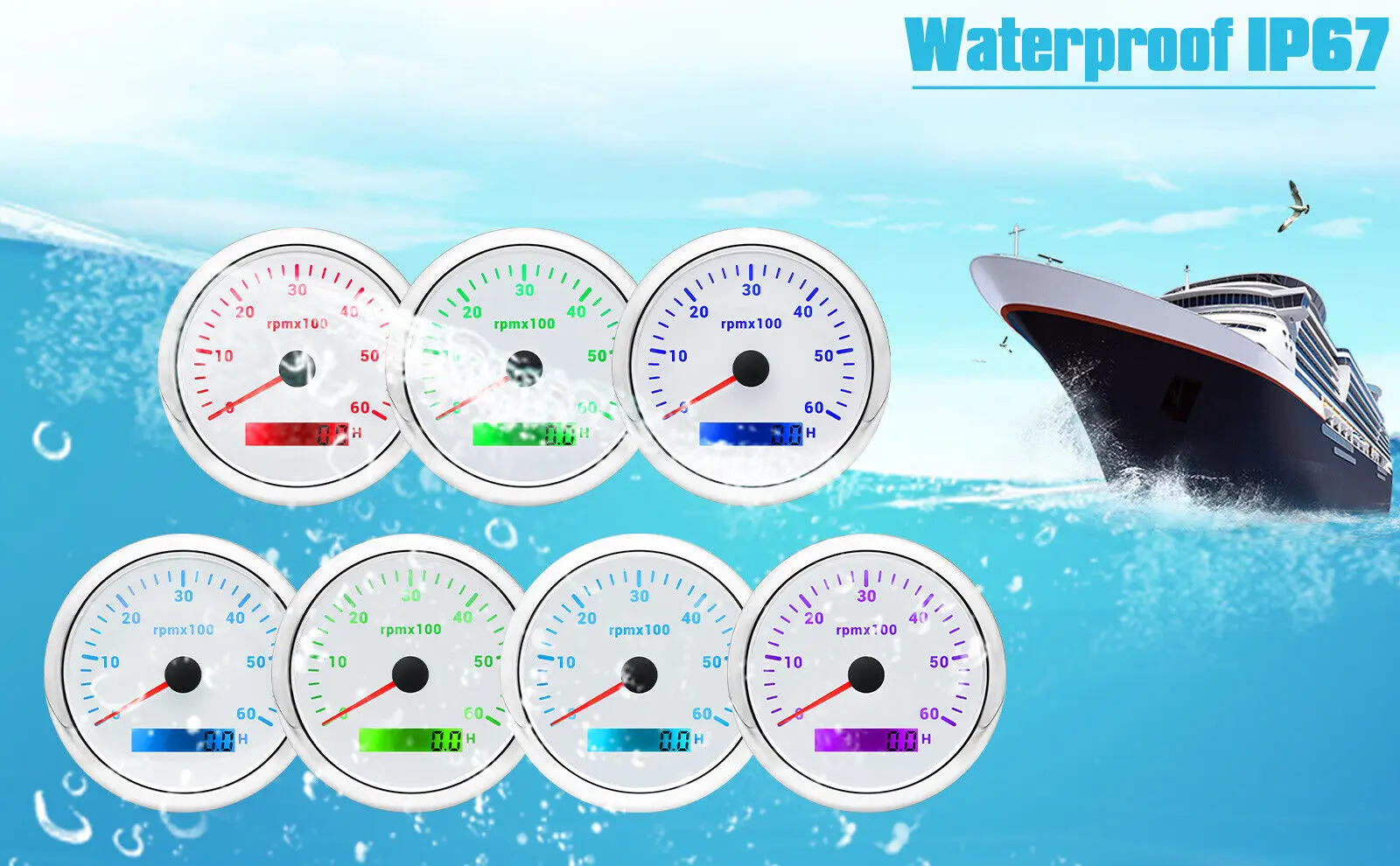1.Be suitable for all kinds of tacho RPM sensors. and display the rotation speed of the engine.2.Use moving-magnet principle to drive the needle. featuring good endurance and anti-vibration.3.IP67 waterproof and dustproof grade4.Stepper motors used for full range of stepping gauges. great feature with its less power consumption. longer life. higher precision. etc.5.With curved glass (with anti-fogging function)6.With ultra-wide working voltage design( long-term operating voltage: 9-32V. Maximum up to: 36V (≤ 1 min)).