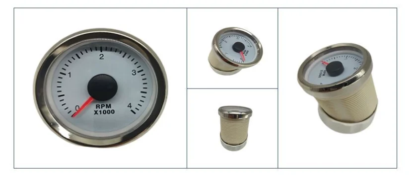 1.Be suitable for all kinds of tacho RPM sensors. and display the rotation speed of the engine.2.Use moving-magnet principle to drive the needle. featuring good endurance and anti-vibration.3.IP67 waterproof and dustproof grade4.Stepper motors used for full range of stepping gauges. great feature with its less power consumption. longer life. higher precision. etc.5.With curved glass (with anti-fogging function)6.With ultra-wide working voltage design( long-term operating voltage: 9-32V. Maximum up to: 36V (≤ 1 min)).