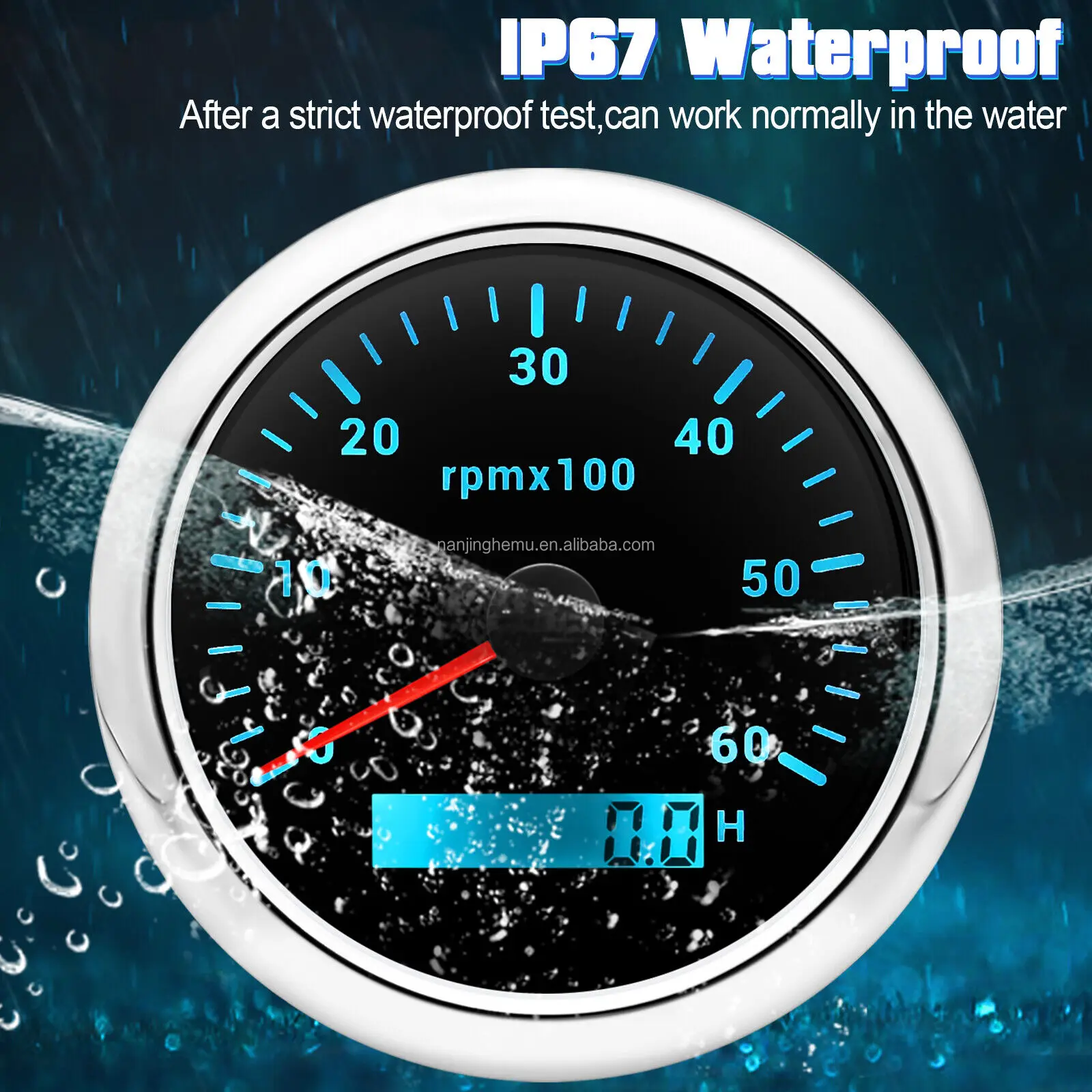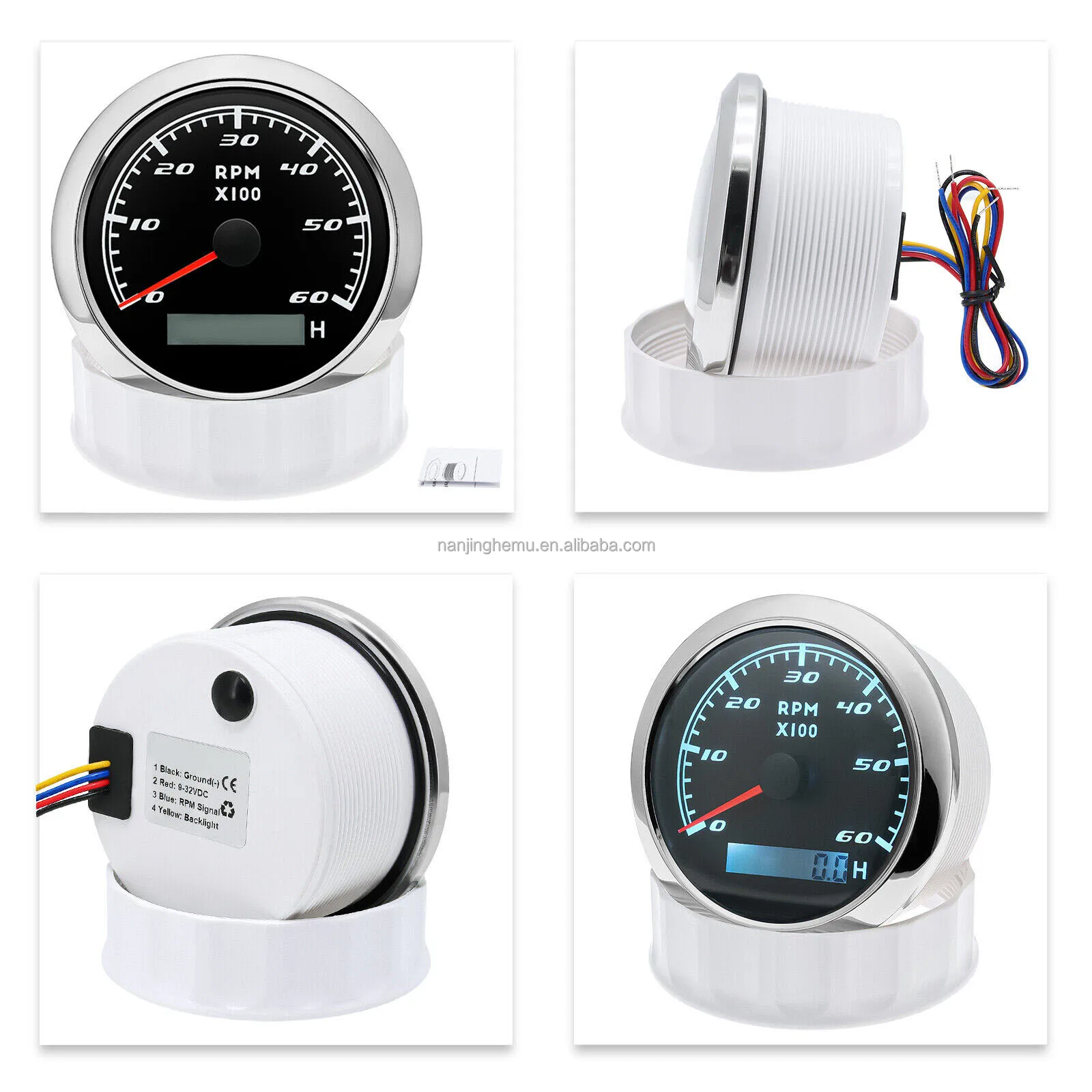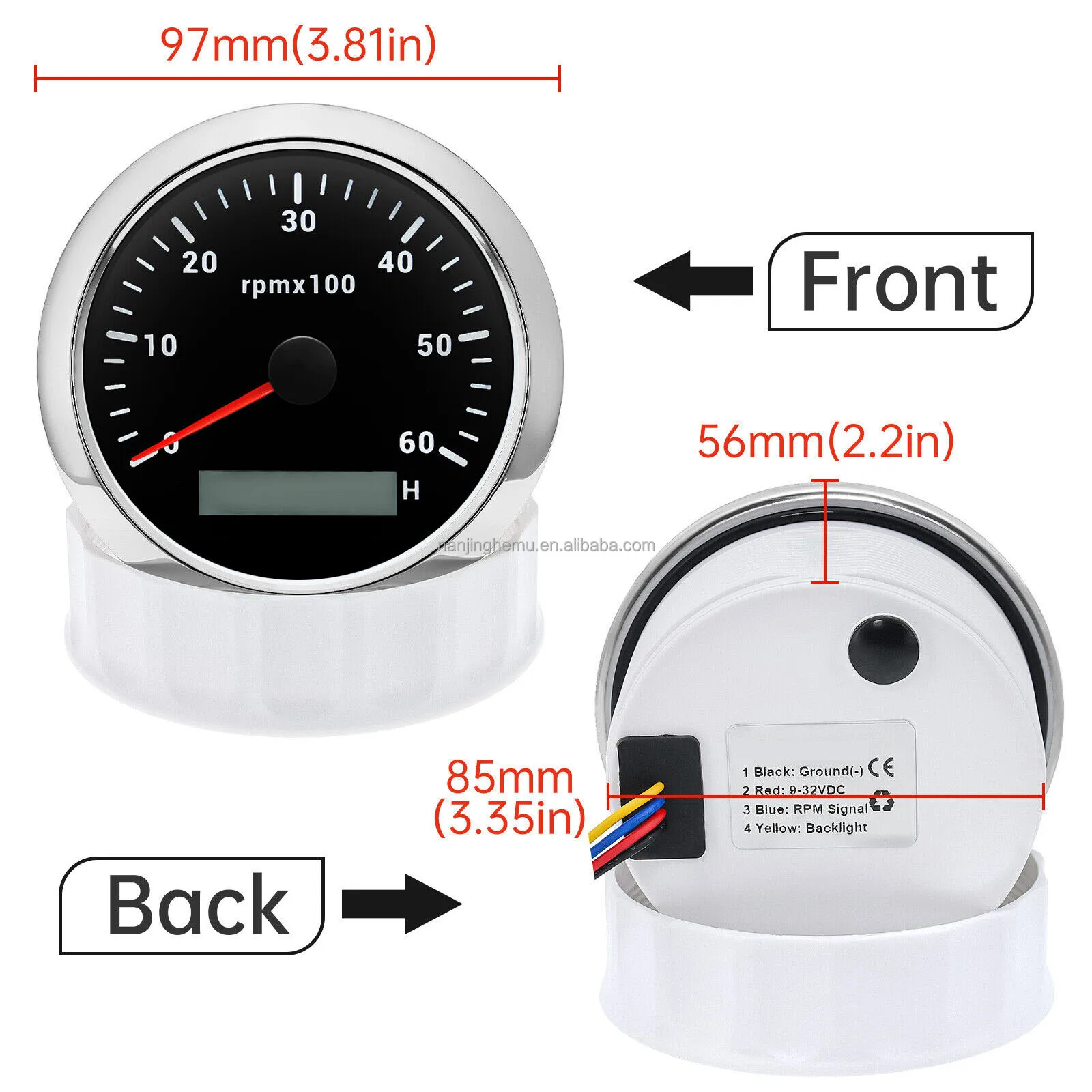 Various Backlights 12/24V White Face 85mm Waterproof Marine Auto Tachometer 6000 RPM