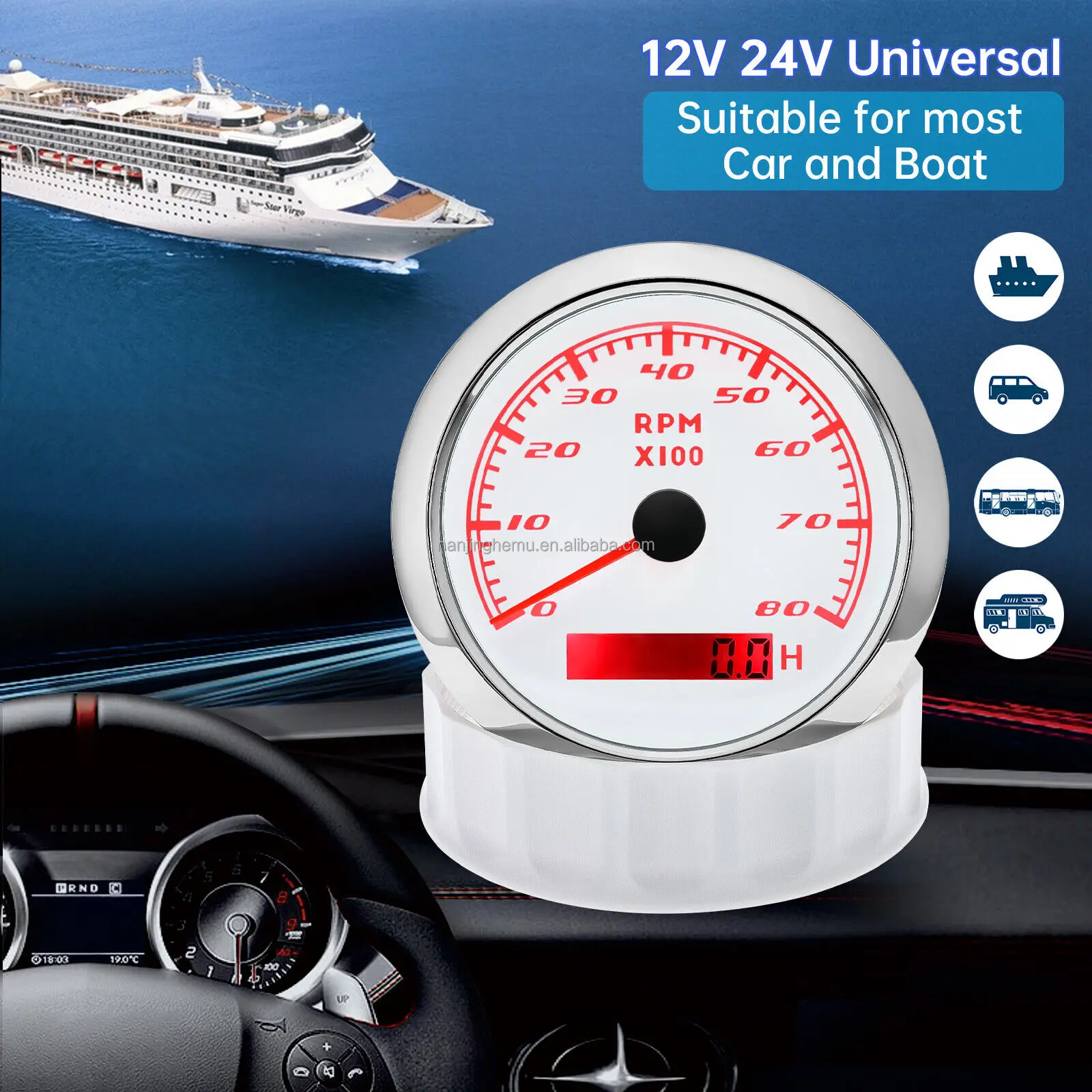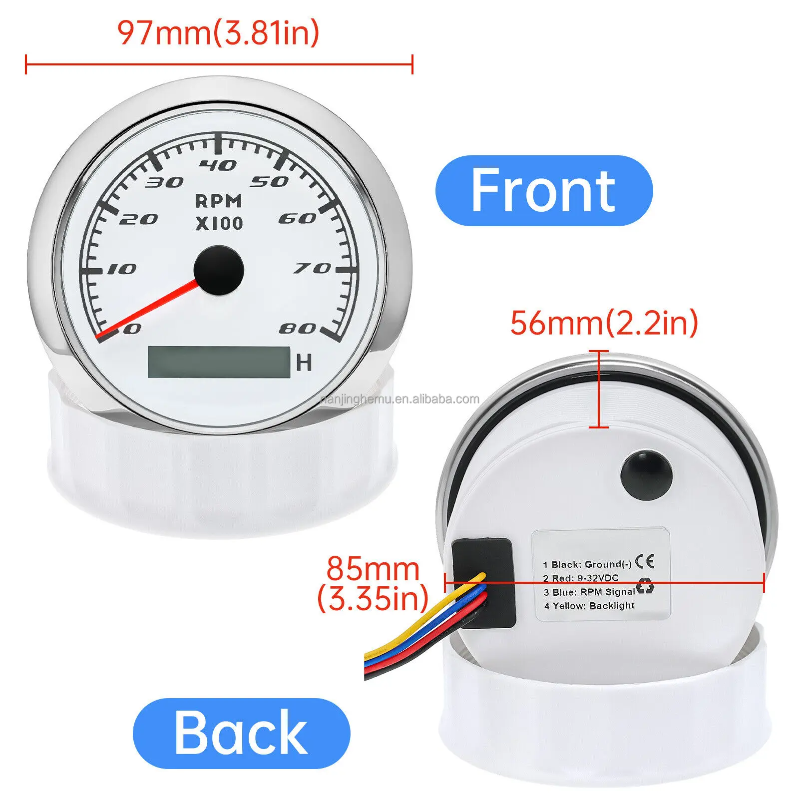 Waterproof 85mm Digital Hour Meter 0-8000 RPM Gauge Tachometer With Backlight