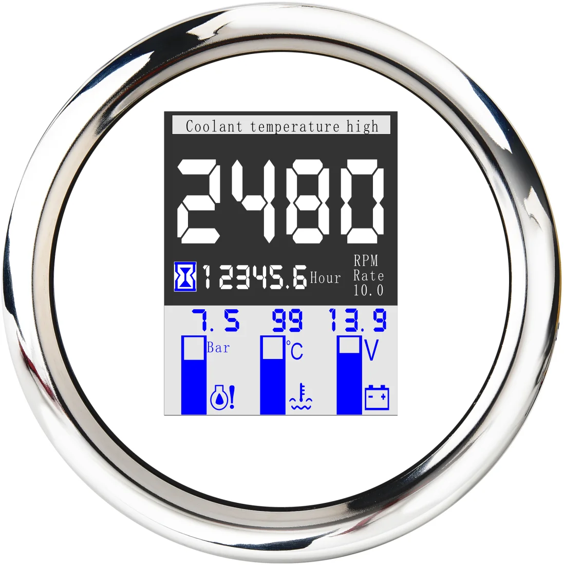 1.316L stainless steel for long-term use even in acid-base. humid environment .2.IP67 waterproof and dustproof grade3.Stepper motors used for full range of stepping gauges. great feature with its less power consumption. longer life. higher precision. etc.4.With curved glass (with anti-fog function)5.With ultra-wide working voltage design( long-term operating voltage: 9-32V. Maximum up to: 36V (≤ 1 minute)).6.Backlight for standard is red(Gauge with multi-color LED light of back-lit illumination (red. yellow. green. blue. purple. white). but various back light could be customized according to customer's requirement.7.Ultra-low power design— The working current of most of the instruments is about 40mA8.Customized color for stainless steel is providedProducts can be used for the engines/generating units. ships. construction machinery. agricultural machinery. automotive modification. etc.
