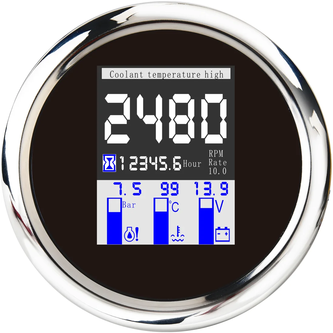 1.316L stainless steel for long-term use even in acid-base. humid environment .2.IP67 waterproof and dustproof grade3.Stepper motors used for full range of stepping gauges. great feature with its less power consumption. longer life. higher precision. etc.4.With curved glass (with anti-fog function)5.With ultra-wide working voltage design( long-term operating voltage: 9-32V. Maximum up to: 36V (≤ 1 minute)).6.Backlight for standard is red(Gauge with multi-color LED light of back-lit illumination (red. yellow. green. blue. purple. white). but various back light could be customized according to customer's requirement.7.Ultra-low power design— The working current of most of the instruments is about 40mA8.Customized color for stainless steel is providedProducts can be used for the engines/generating units. ships. construction machinery. agricultural machinery. automotive modification. etc.